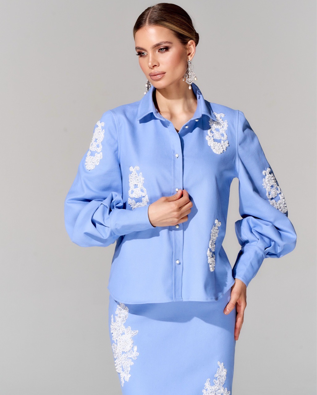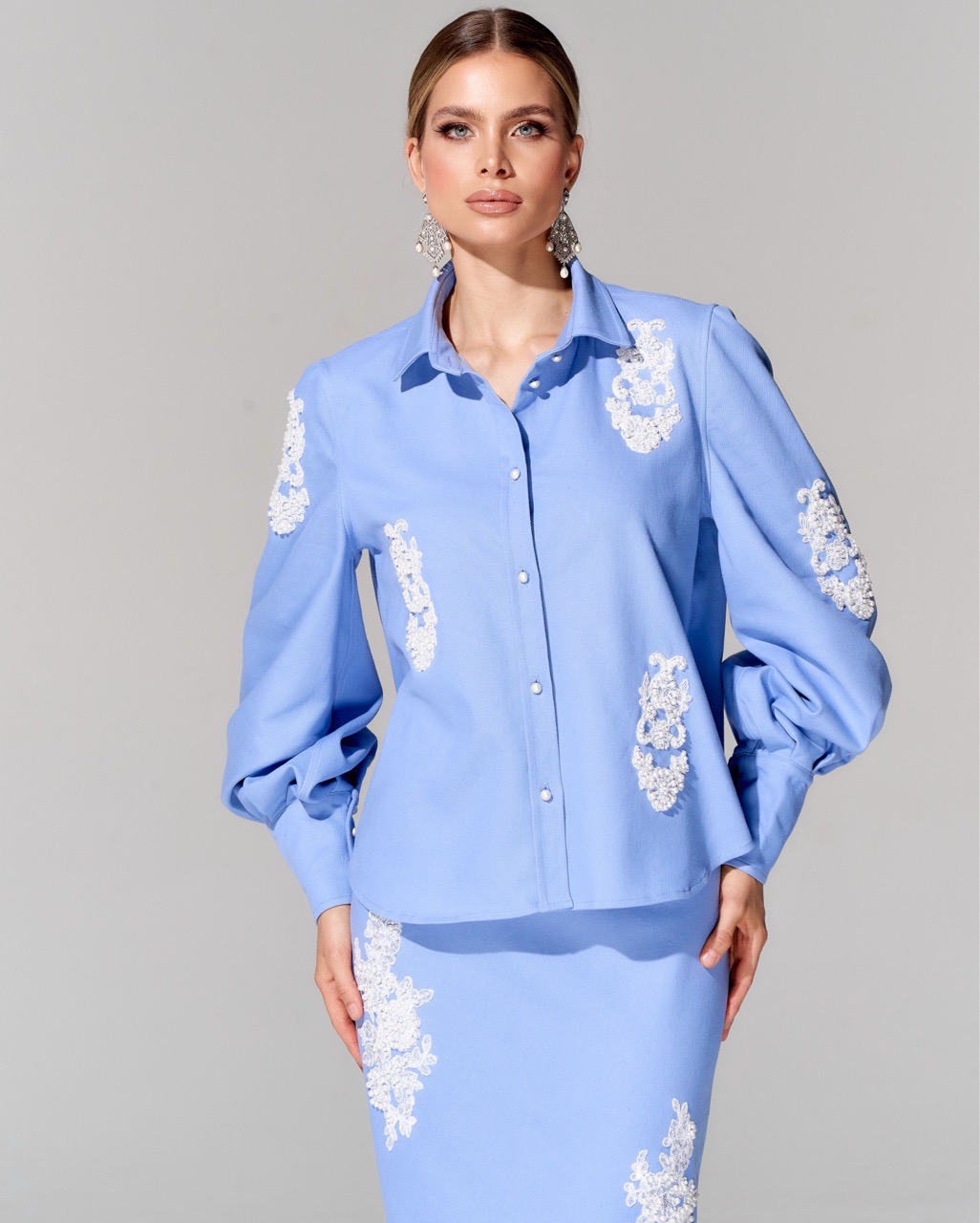 Юбка из премиальной джинсовой ткани с вышивкой ручной работы