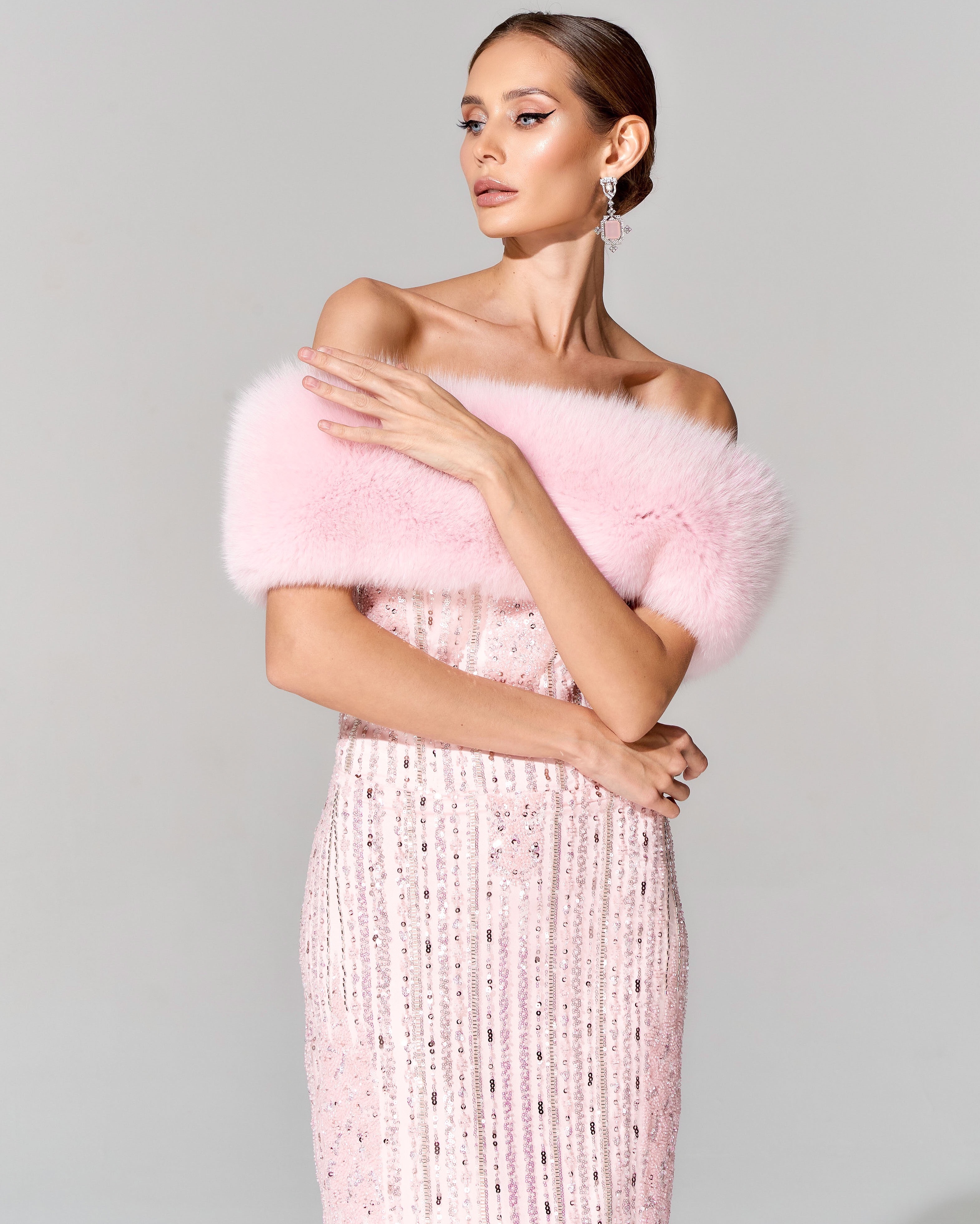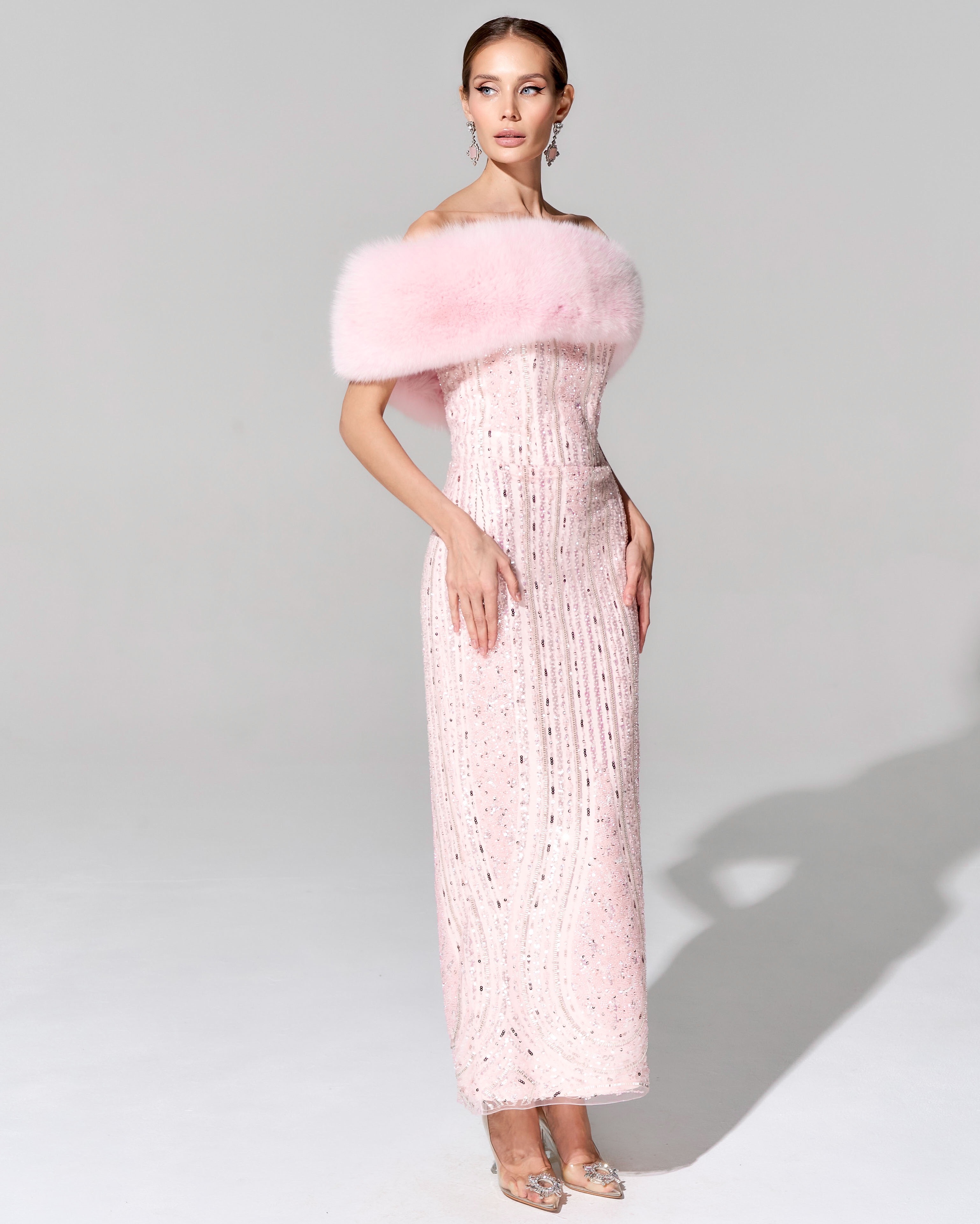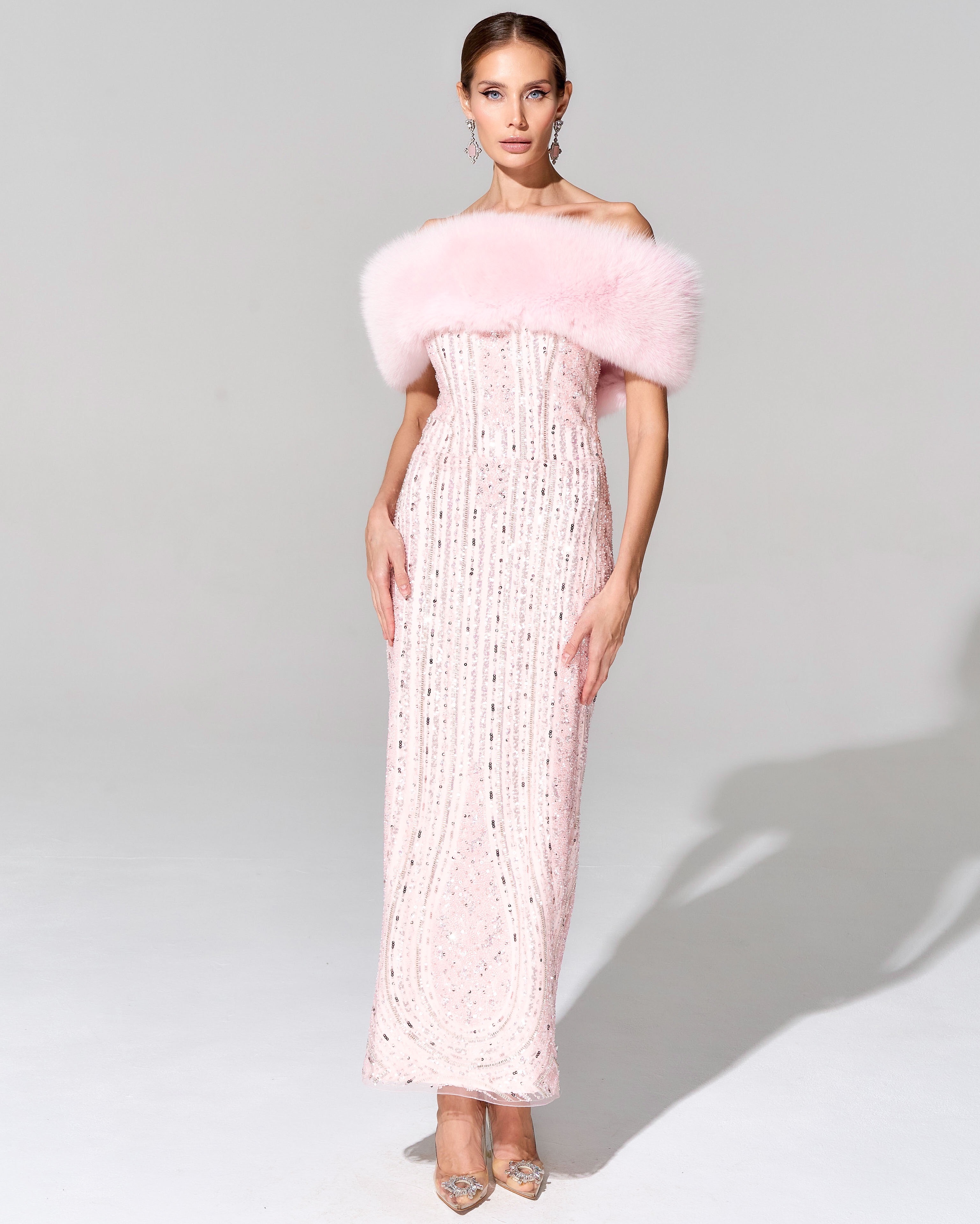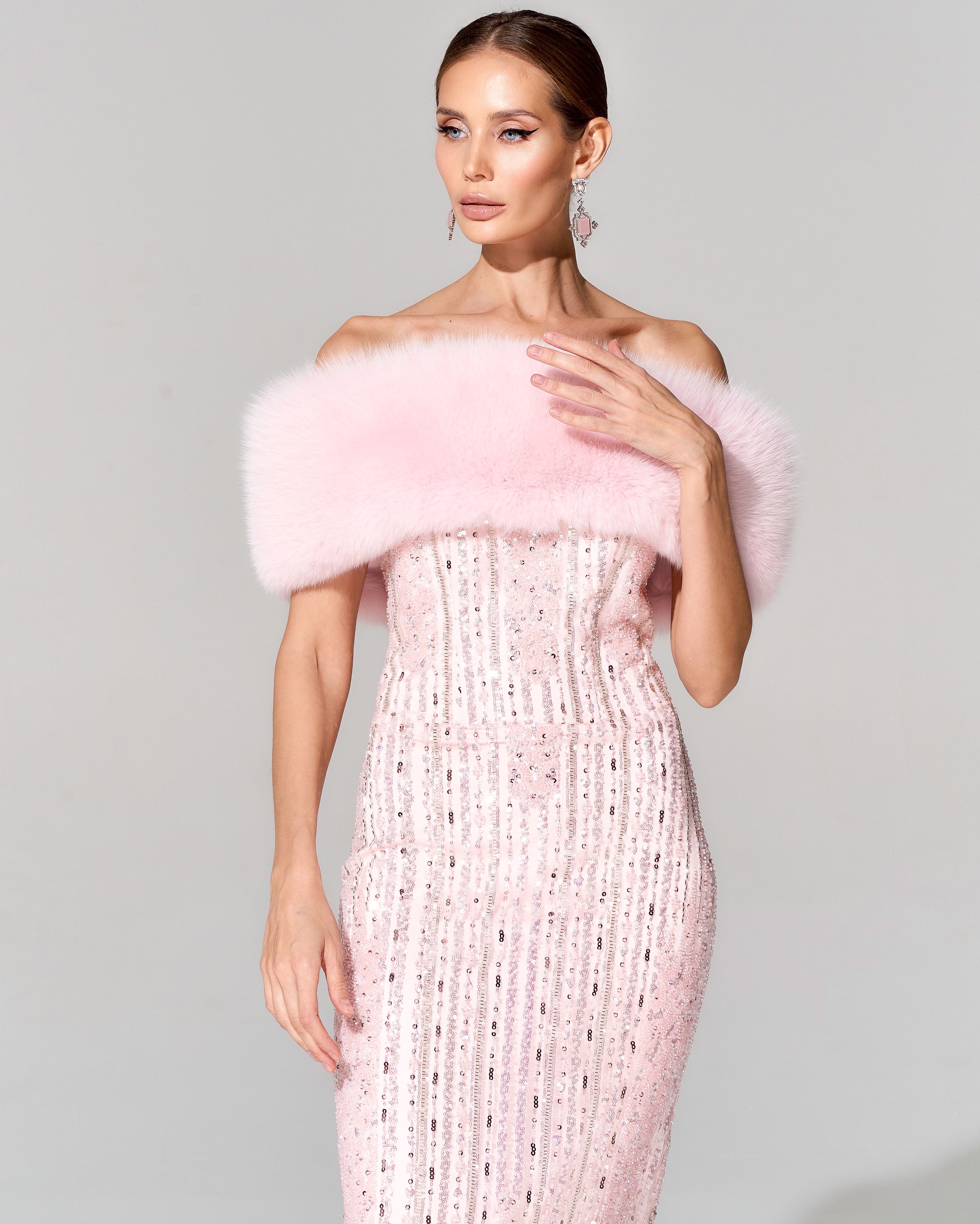 Корсетное платье с вышивкой ручной работы и меховой отделкой