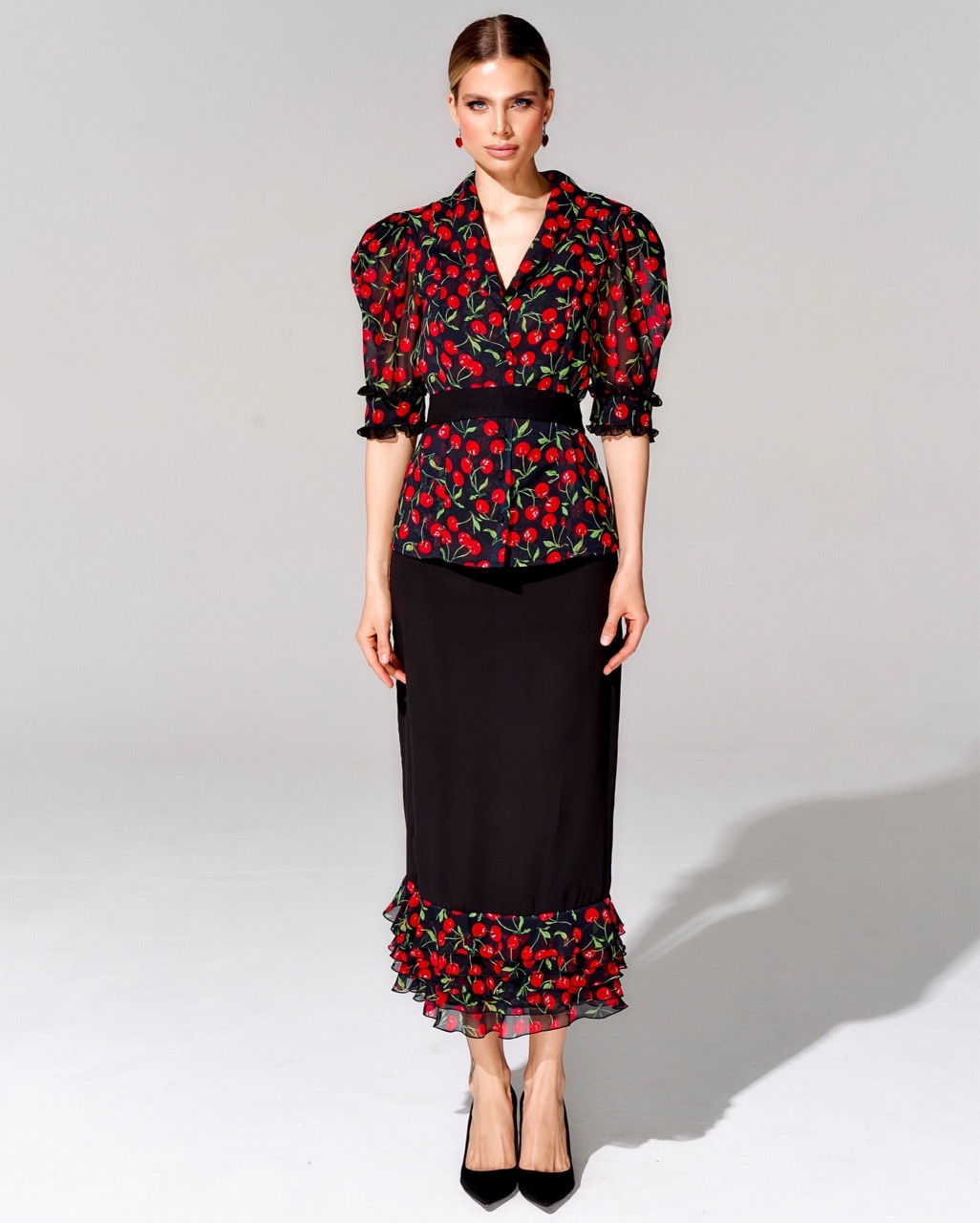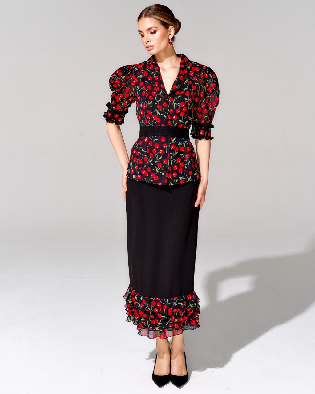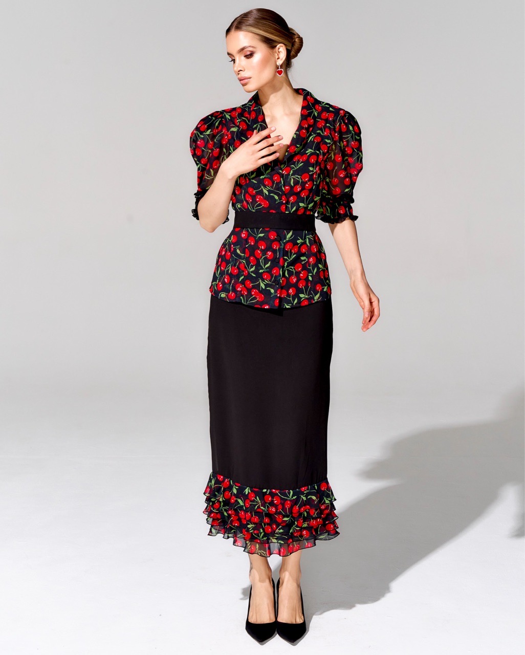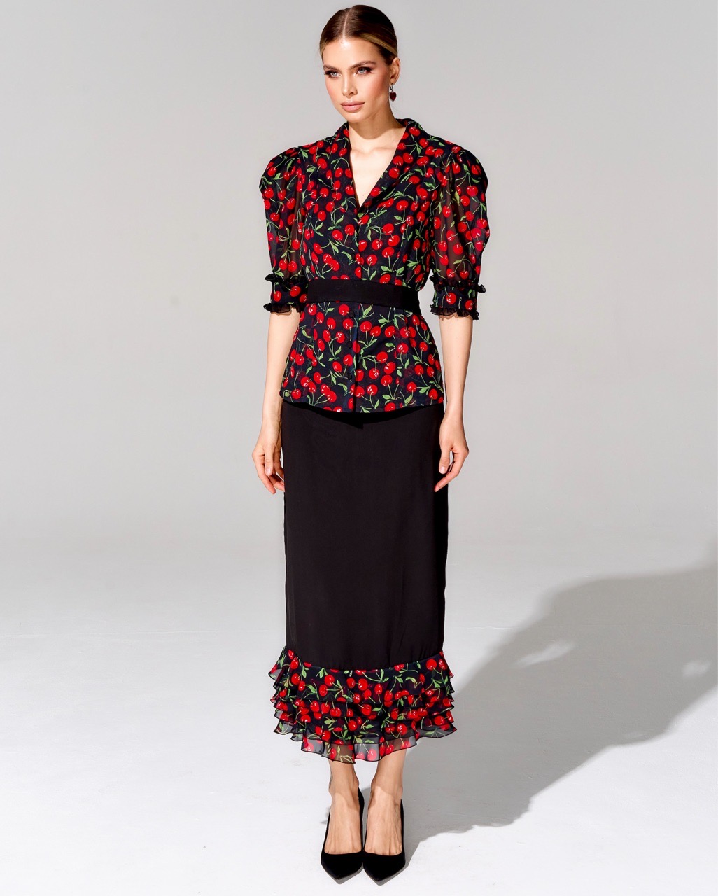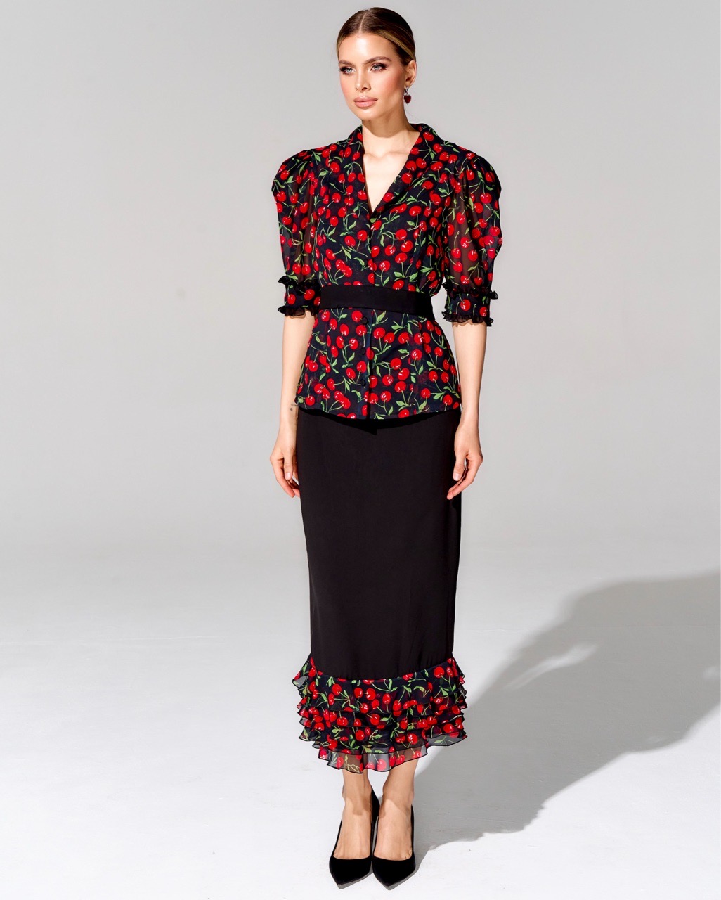 Костюм с юбкой длины миди