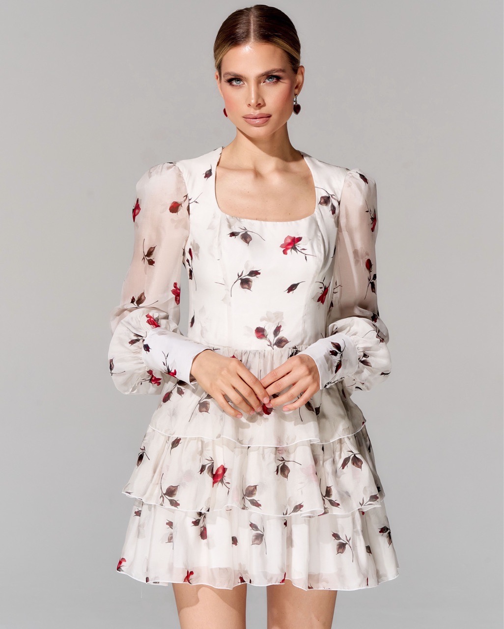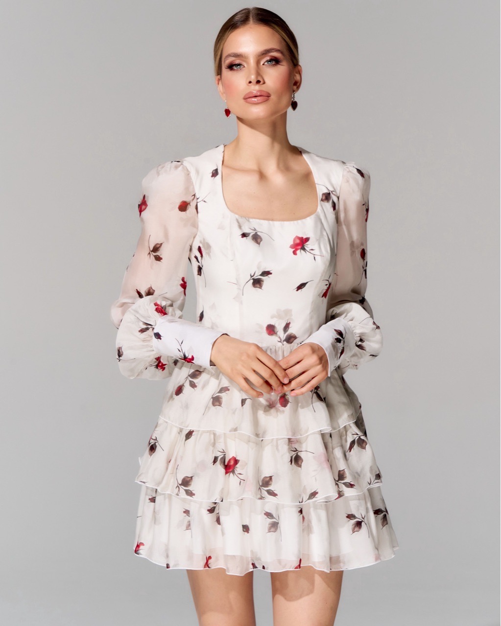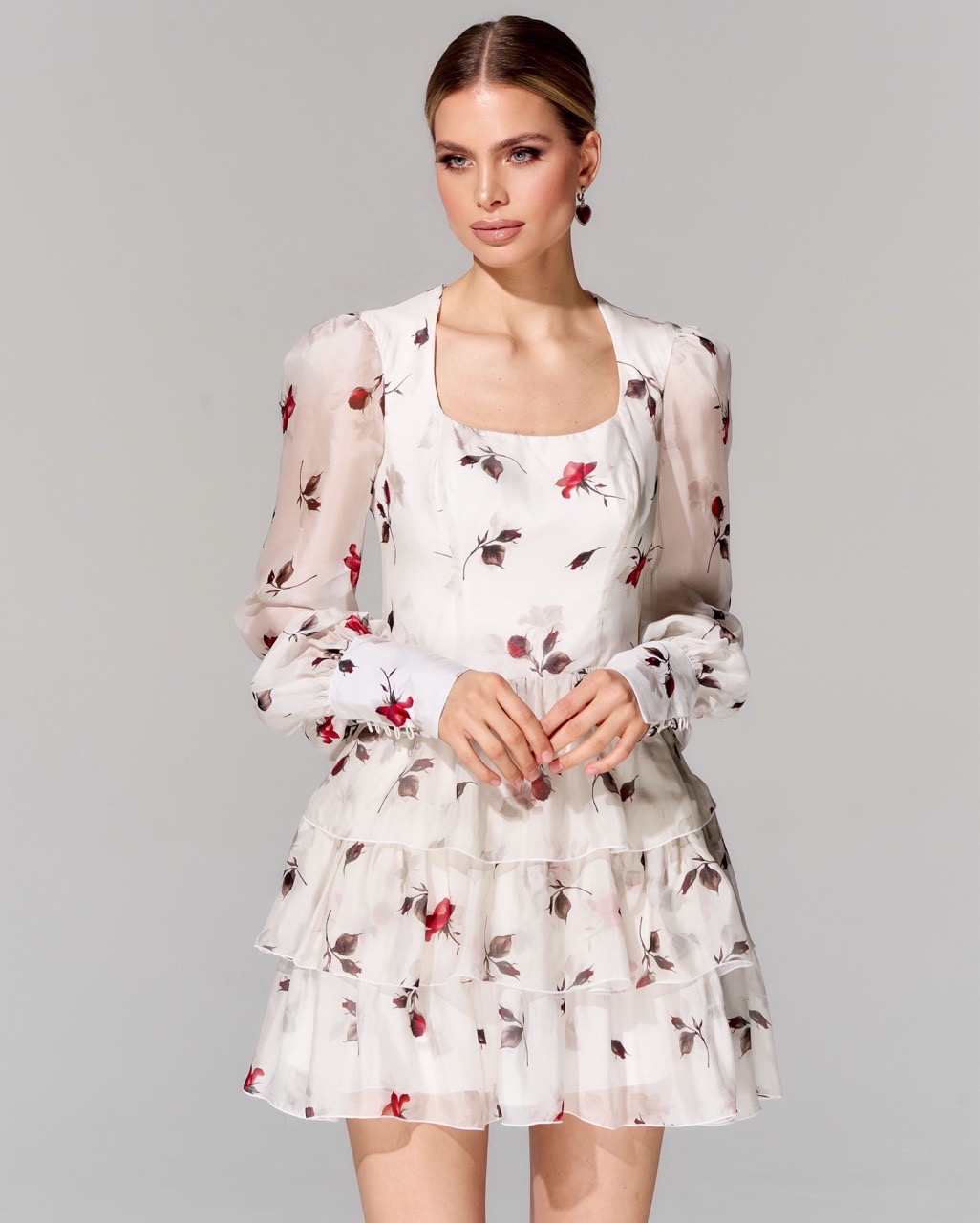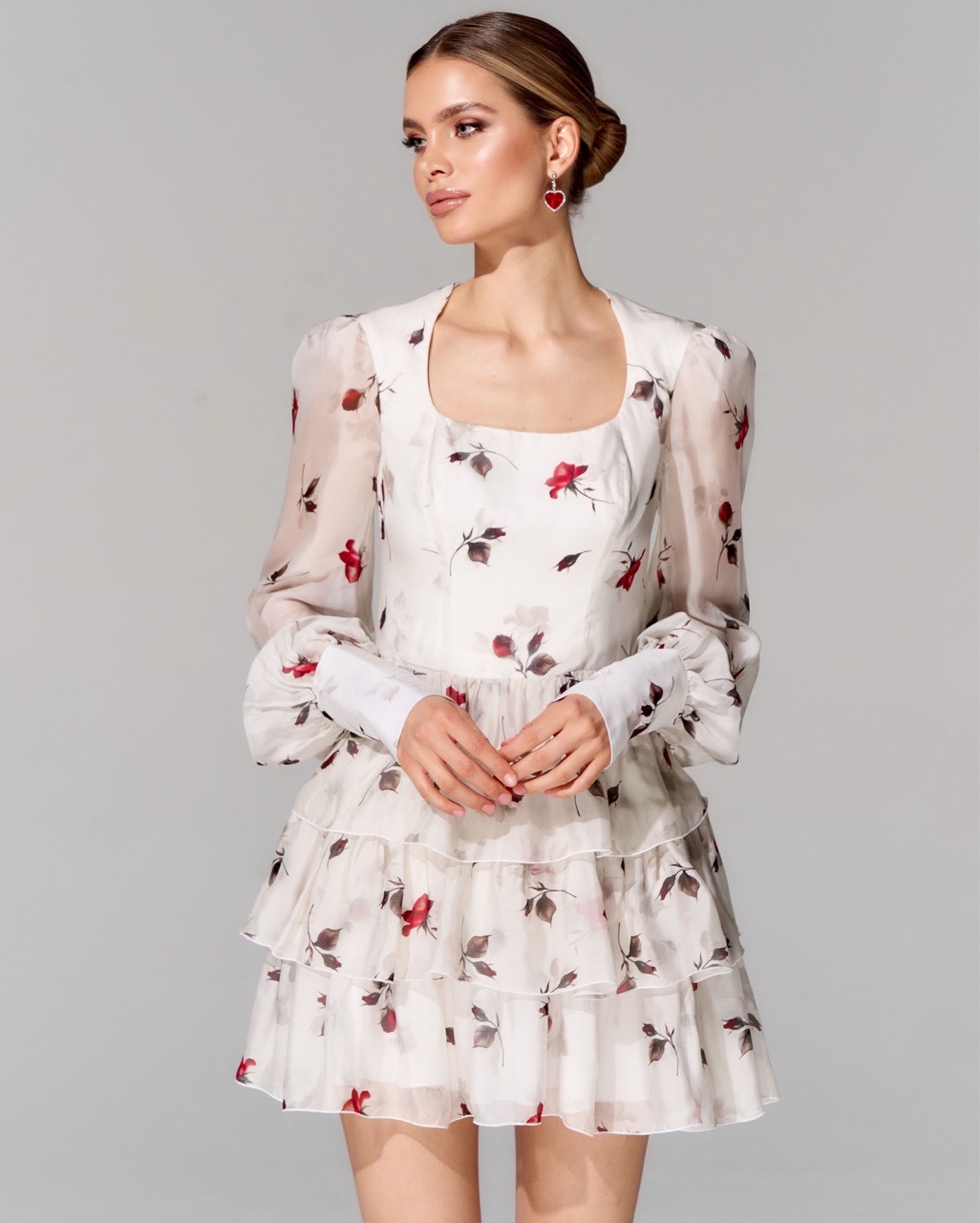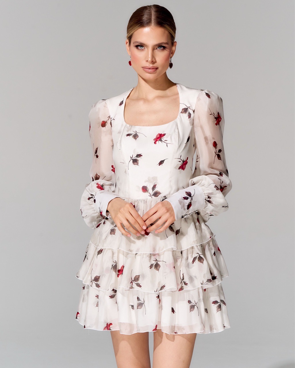 Платье длины мини из 100% шелка