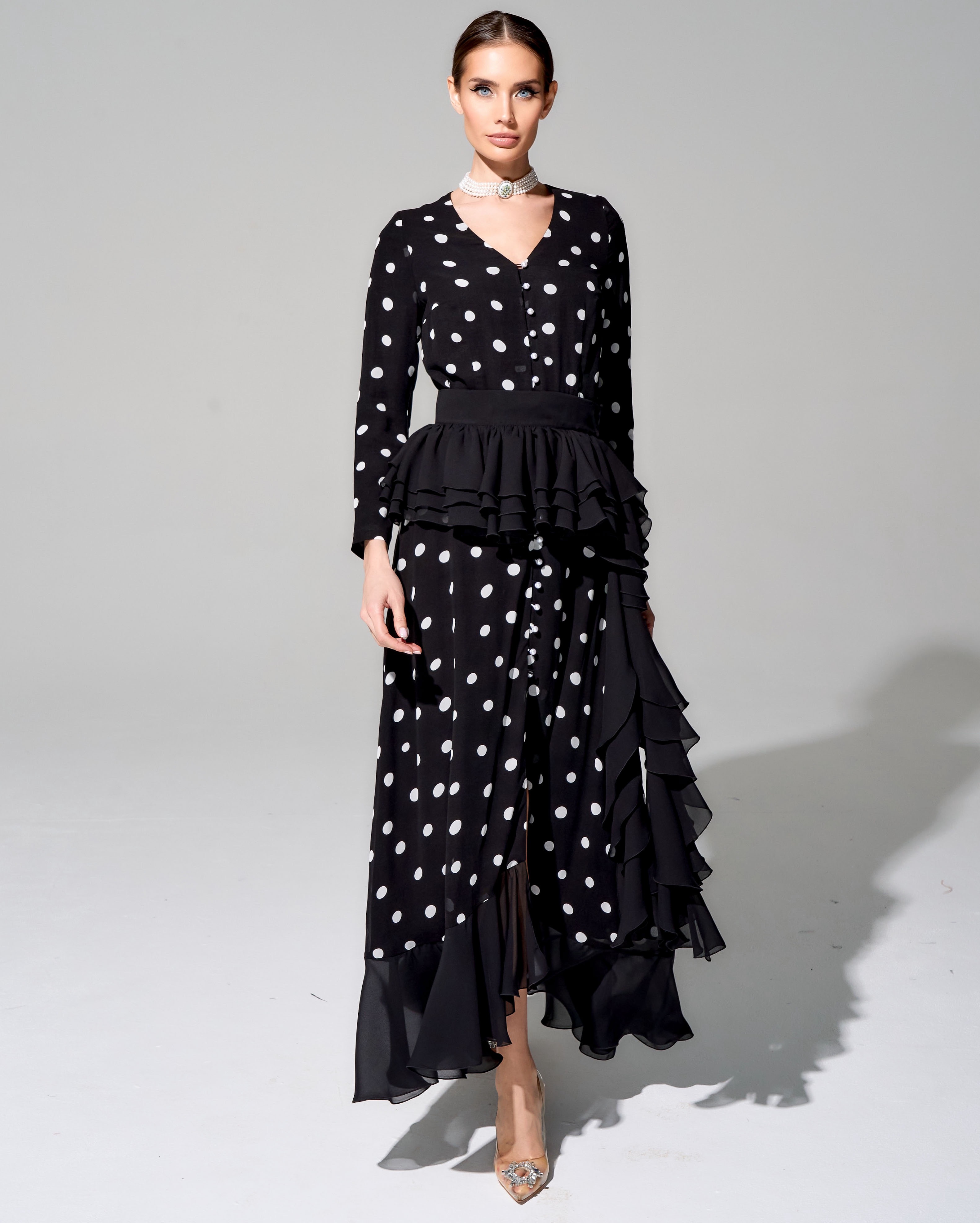 Платье длины миди из премиального шифона