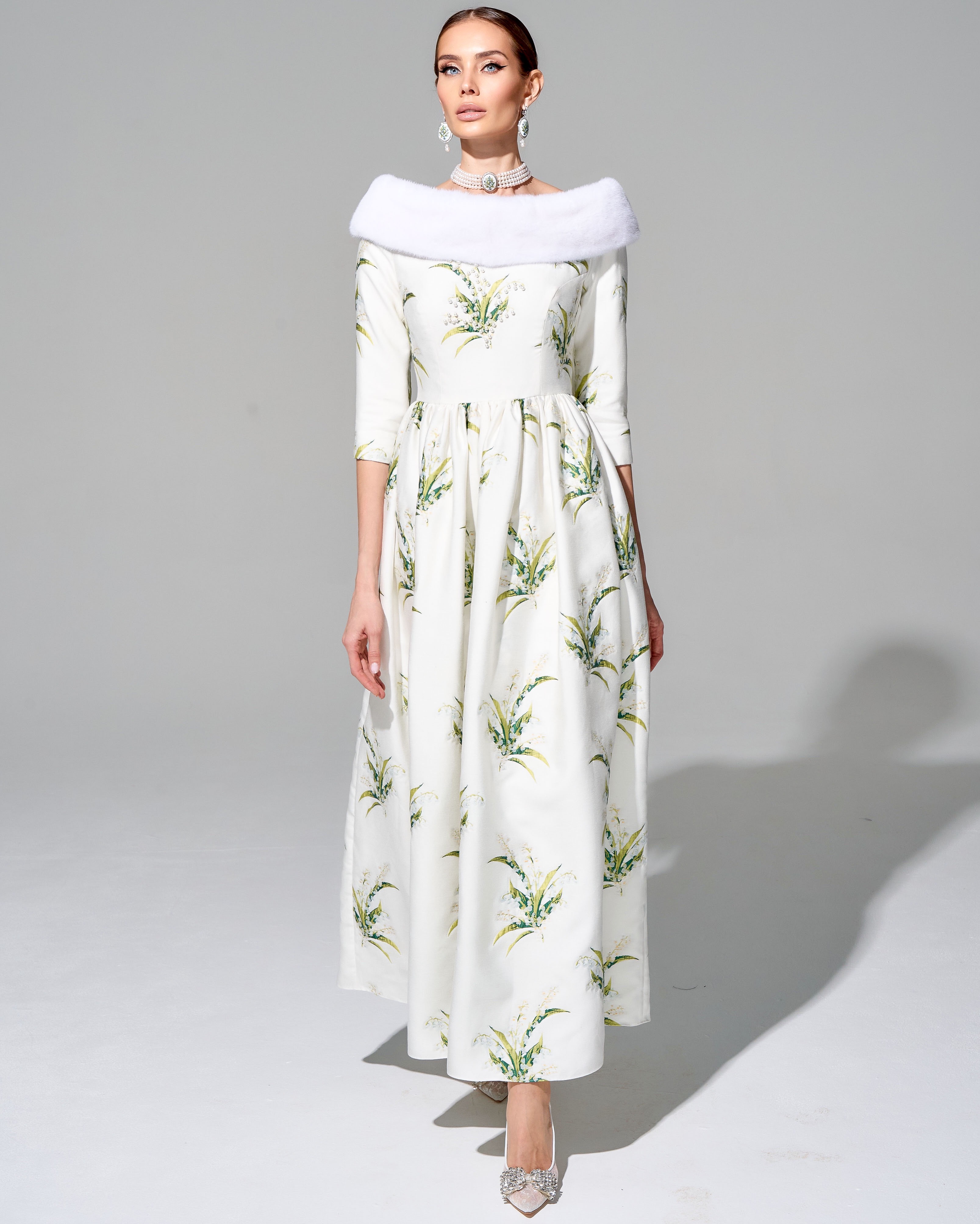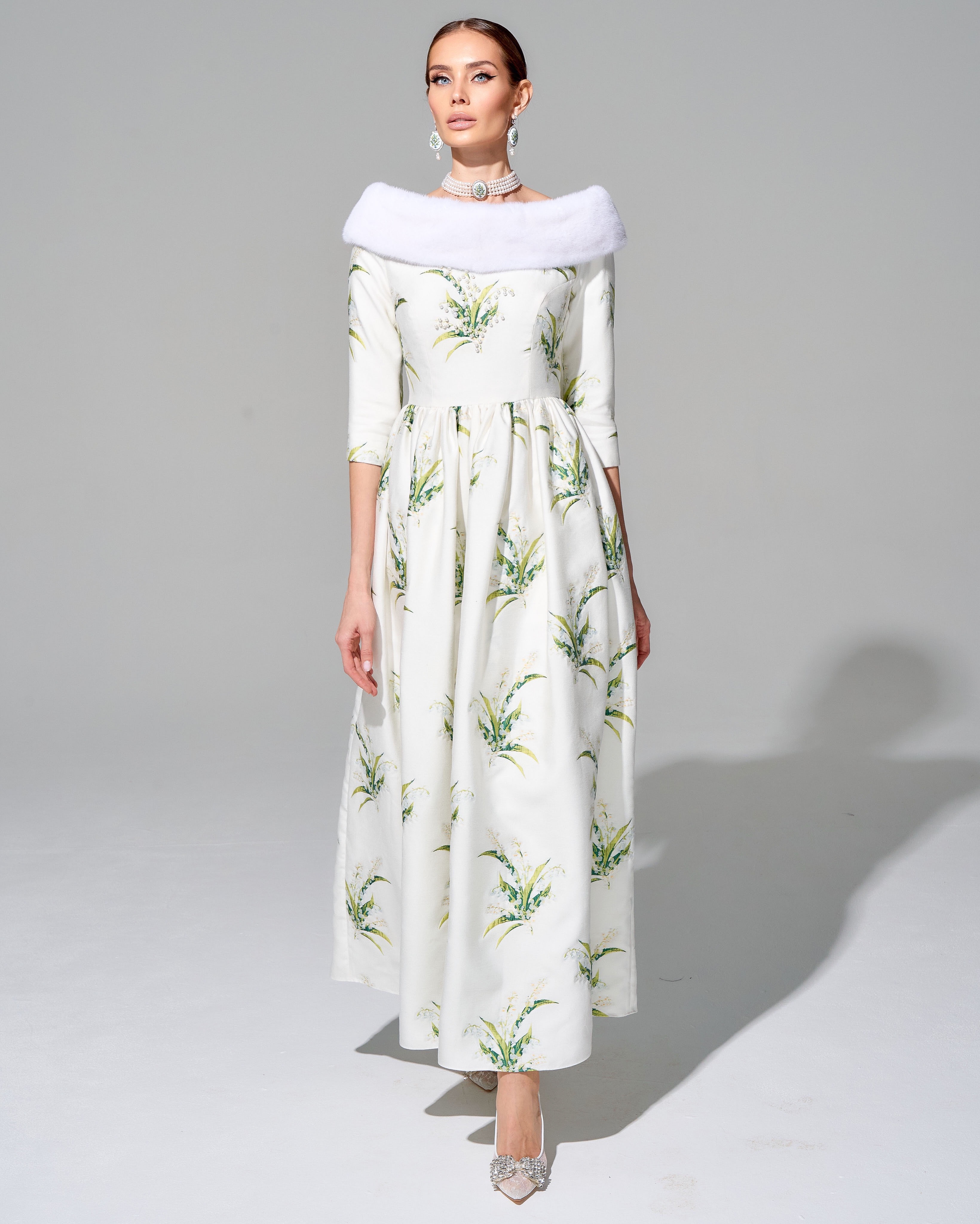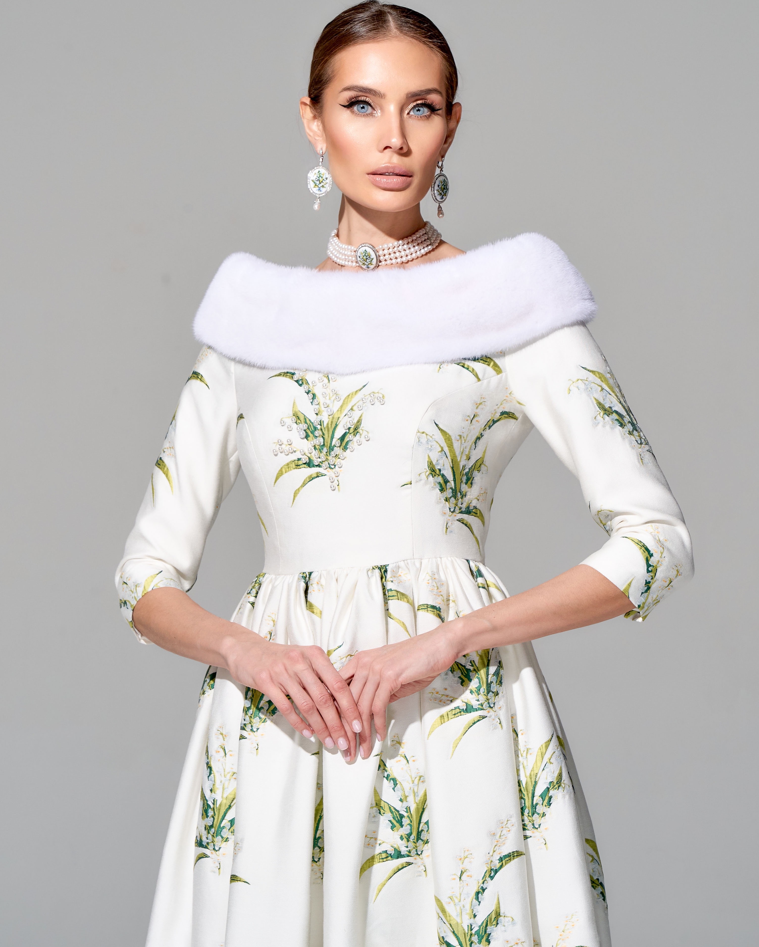 Платье "Весна в Париже" с меховой отделкой