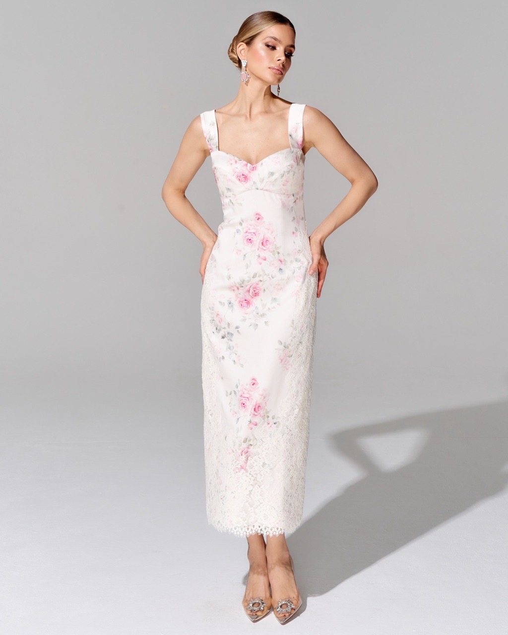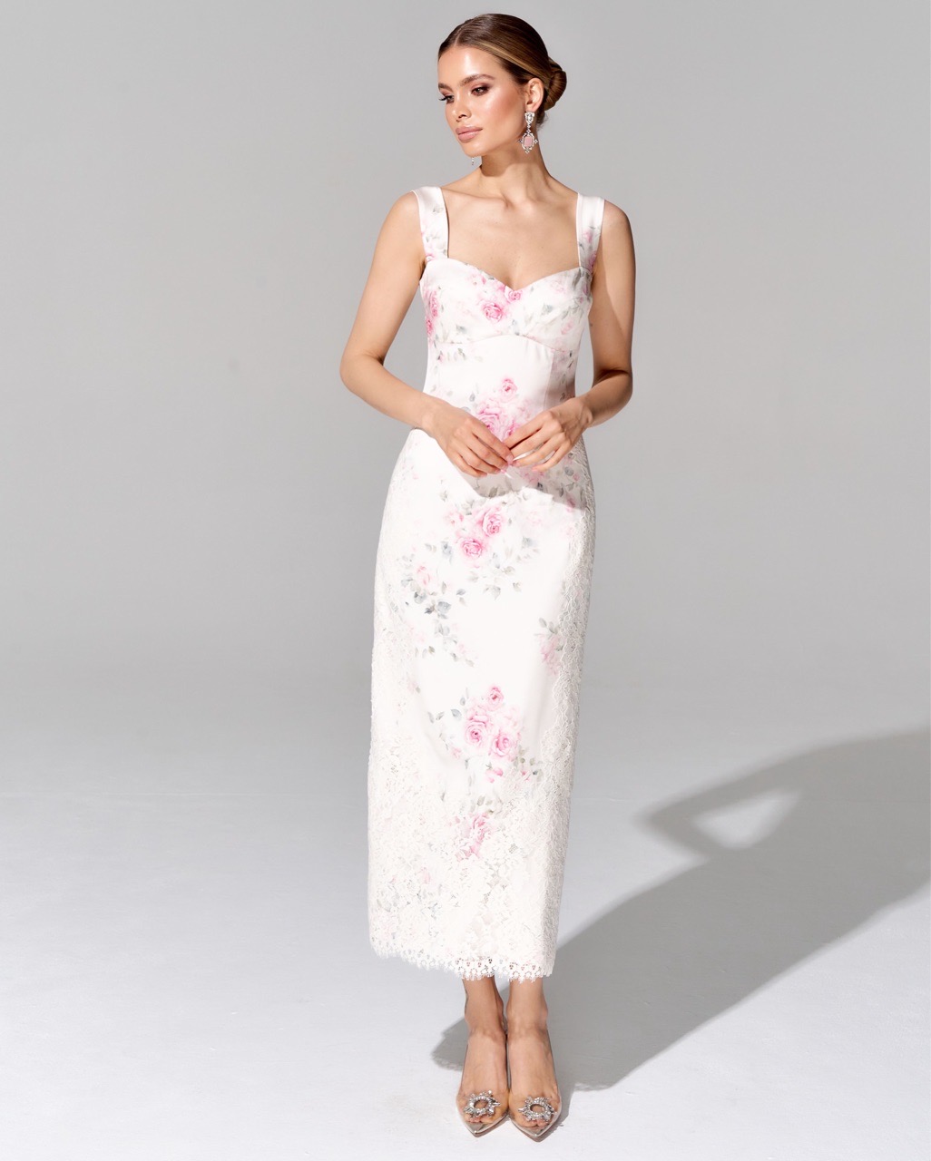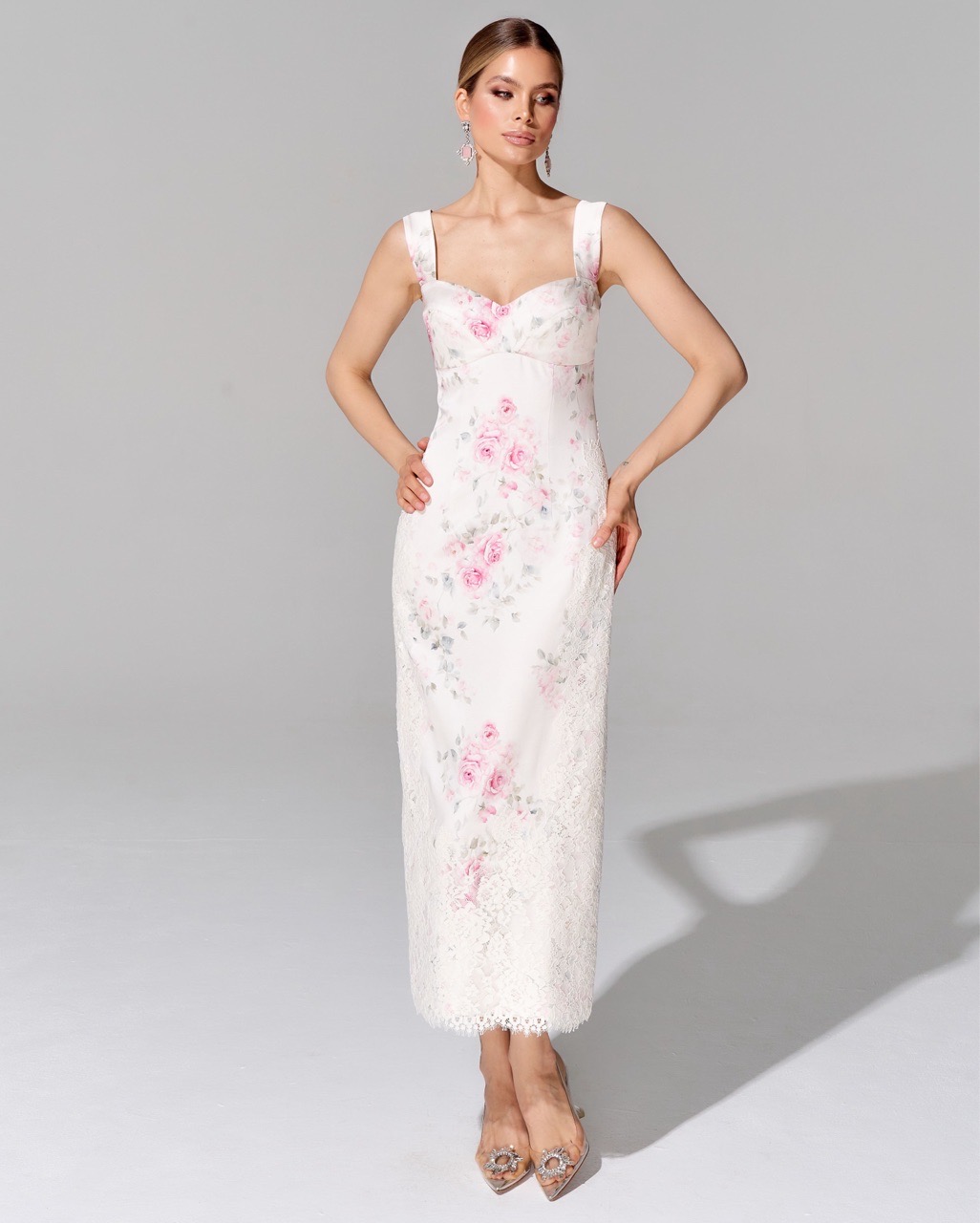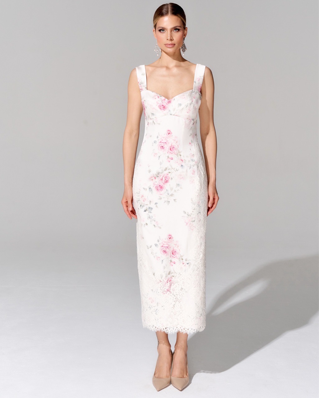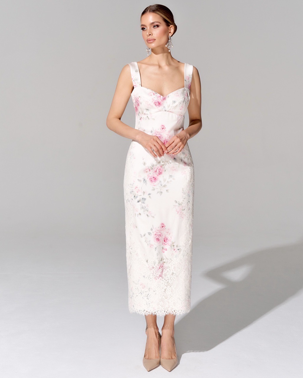Платье-футляр с отделкой премиальным кружевом