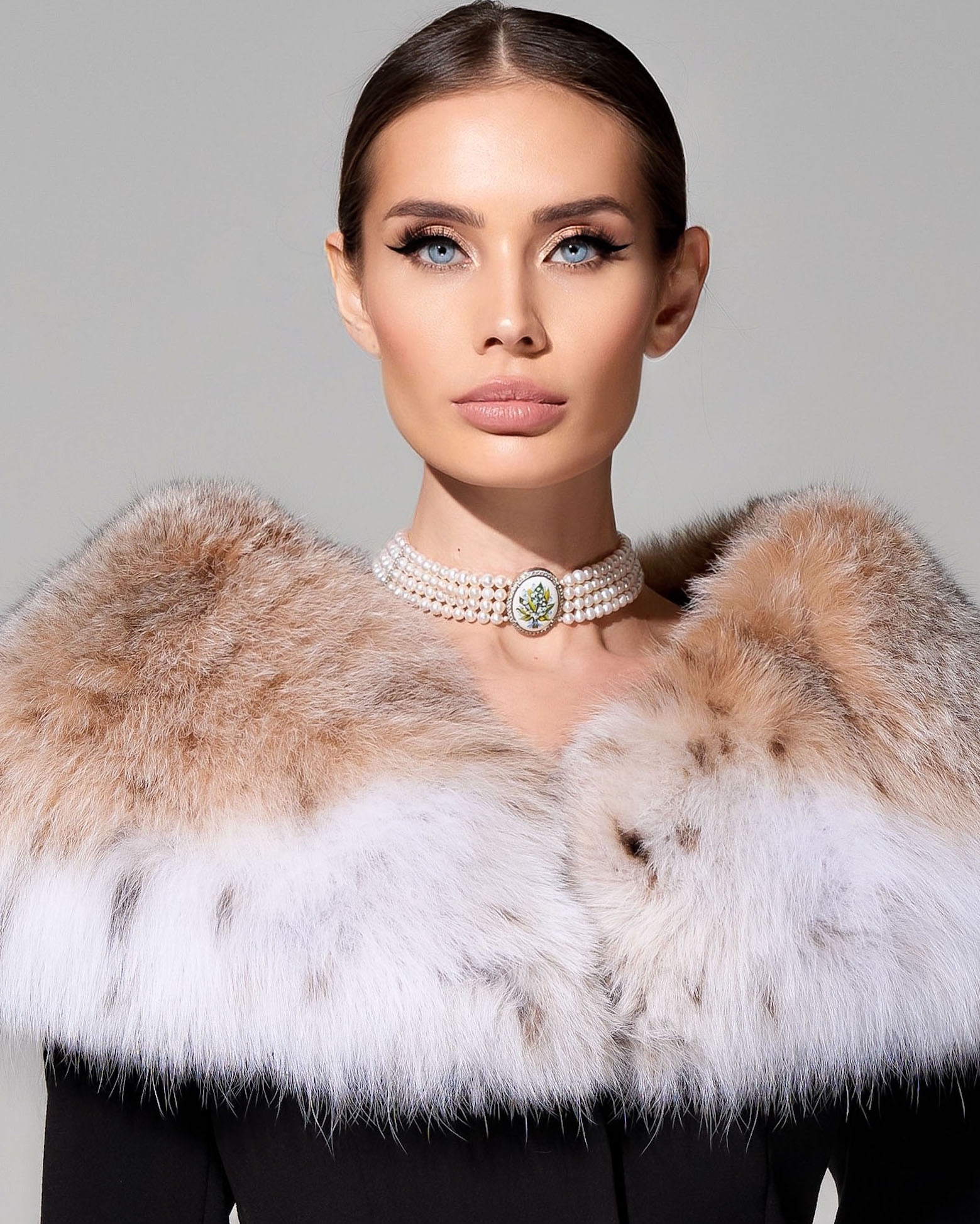 Приталенный жакет из итальянского крепа с меховой отделкой рыси