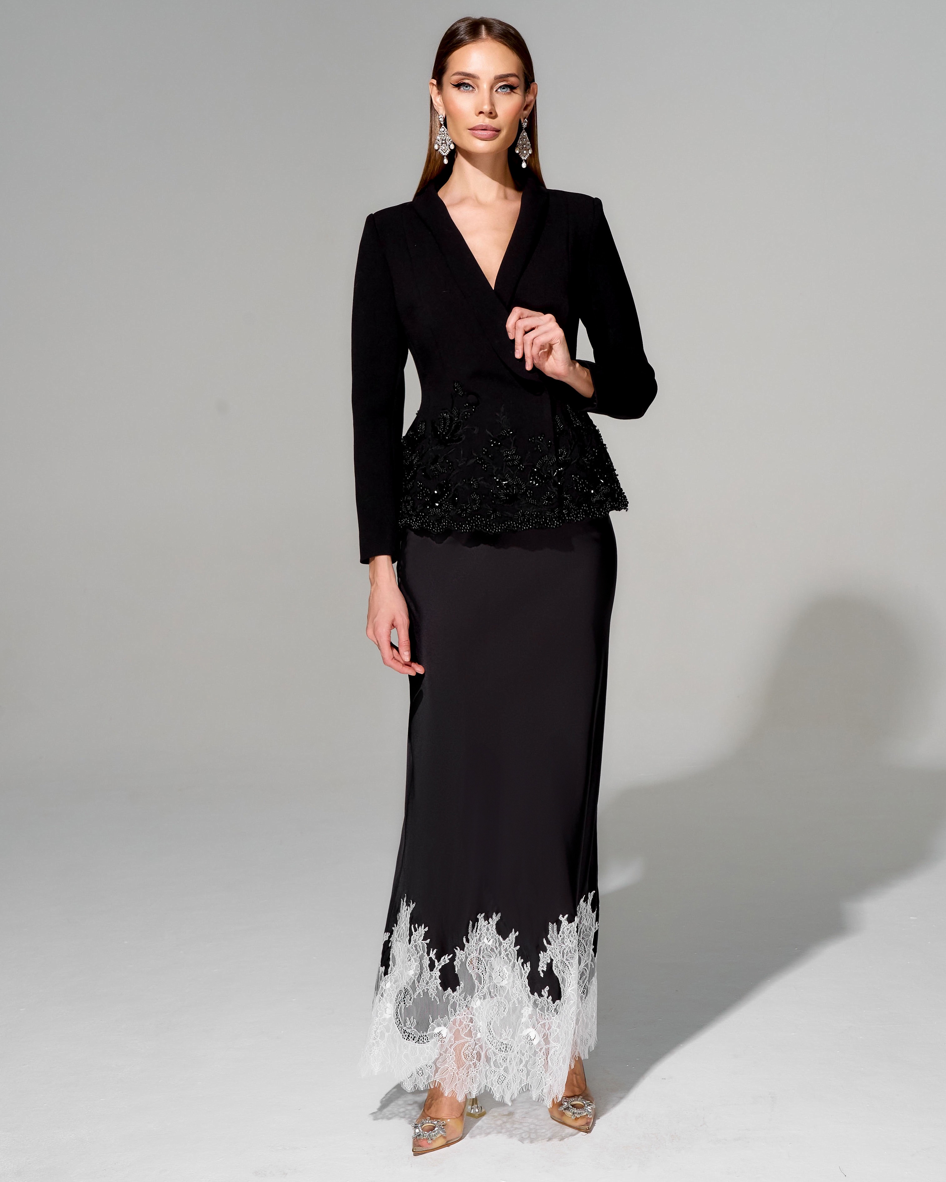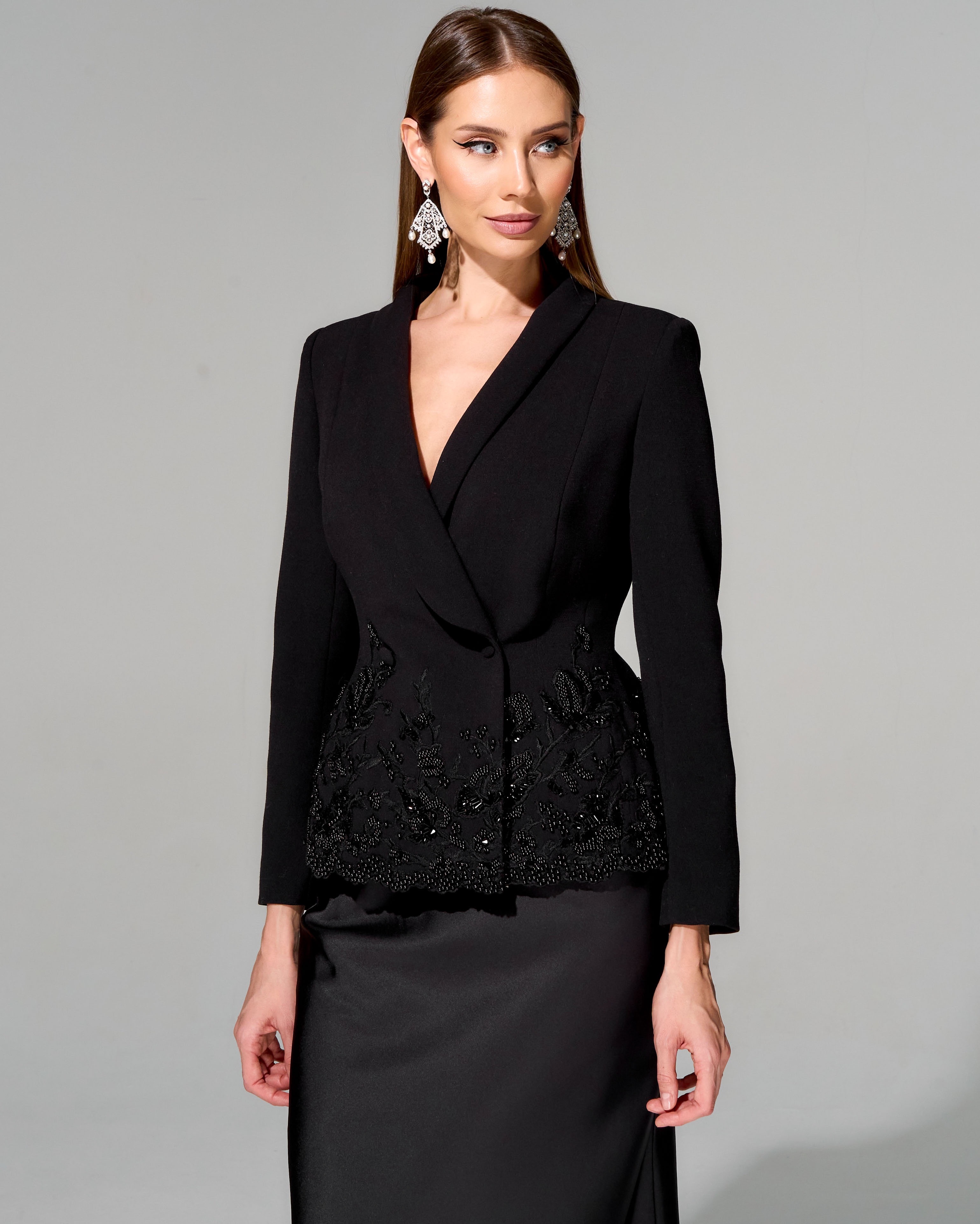 Приталенный жакет из итальянского крепа с вышивкой ручной работы