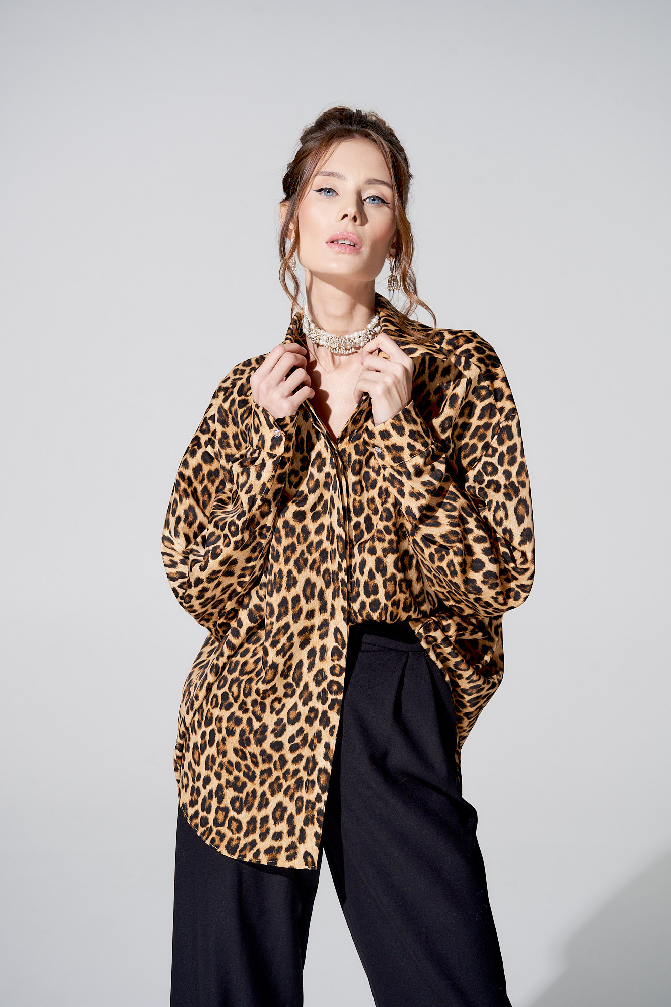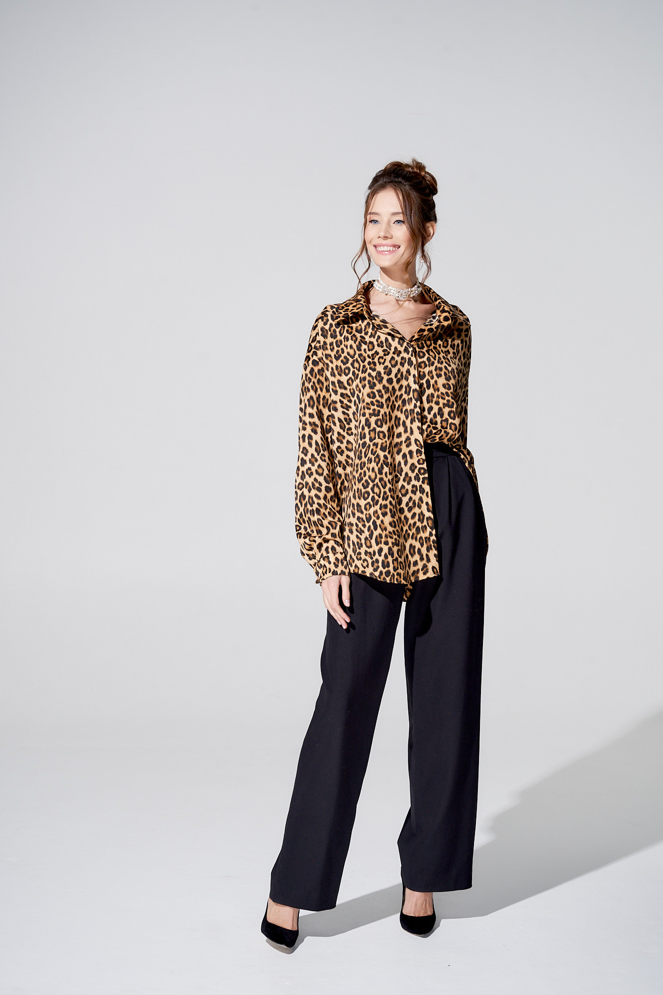 Самый актуальный принт этого сезона. Принт задаёт настроение образу, делая его по-настоящему роскошным. Струящаяся шелковая ткань дарит самые приятные тактильные ощущения. Благодаря свободному крою рубашка идеально подойдет любому типу фигуры.