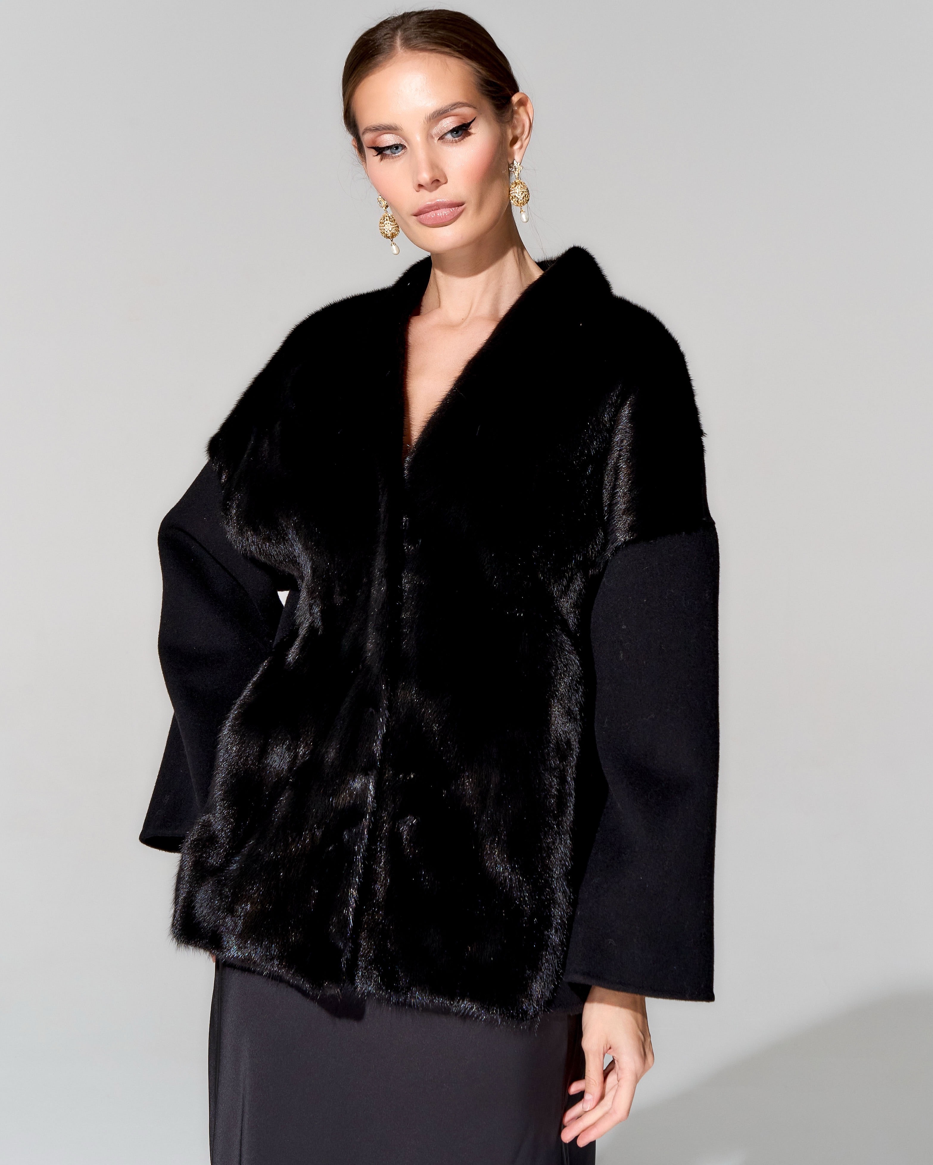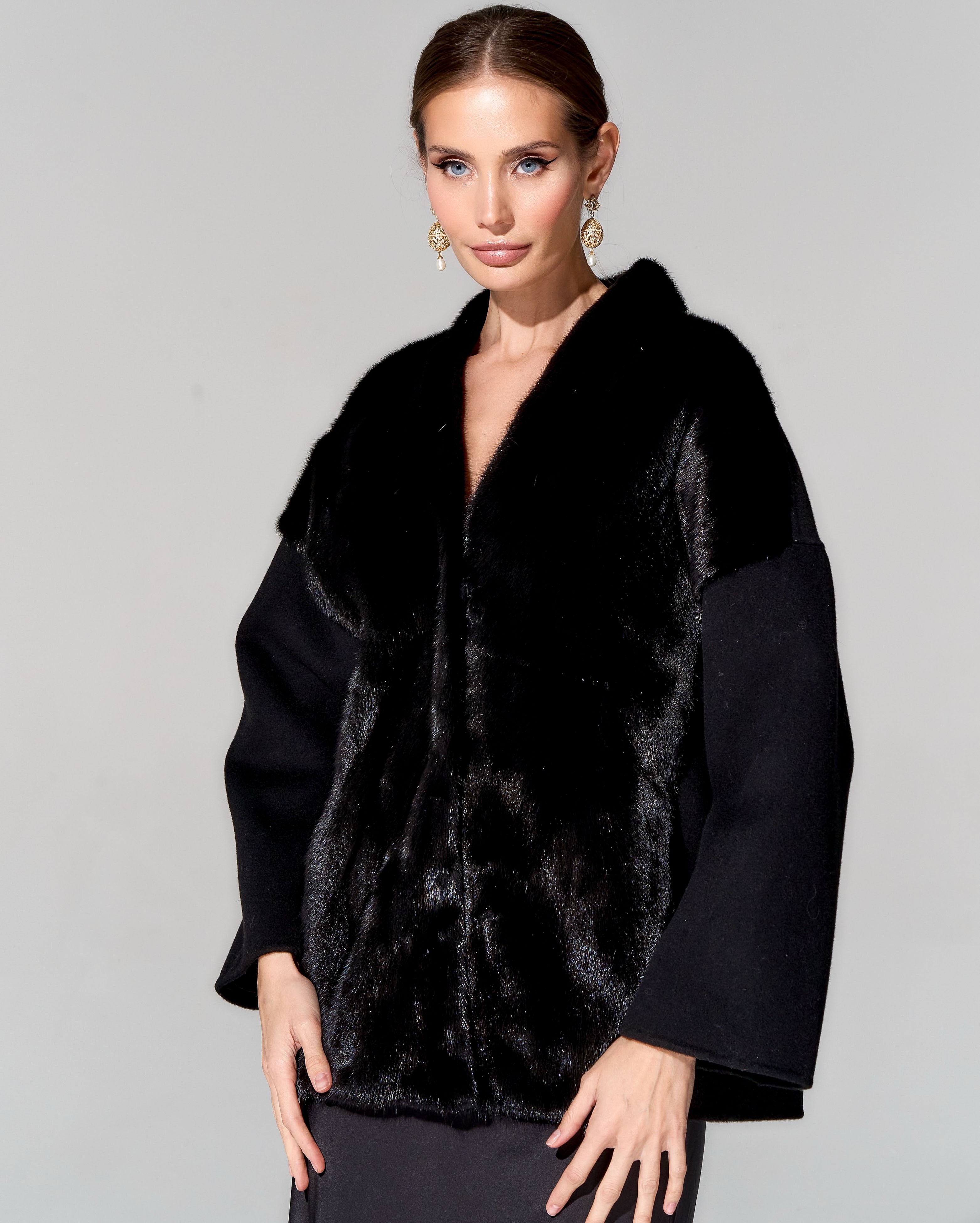 Укороченное пальто с меховой отделкой