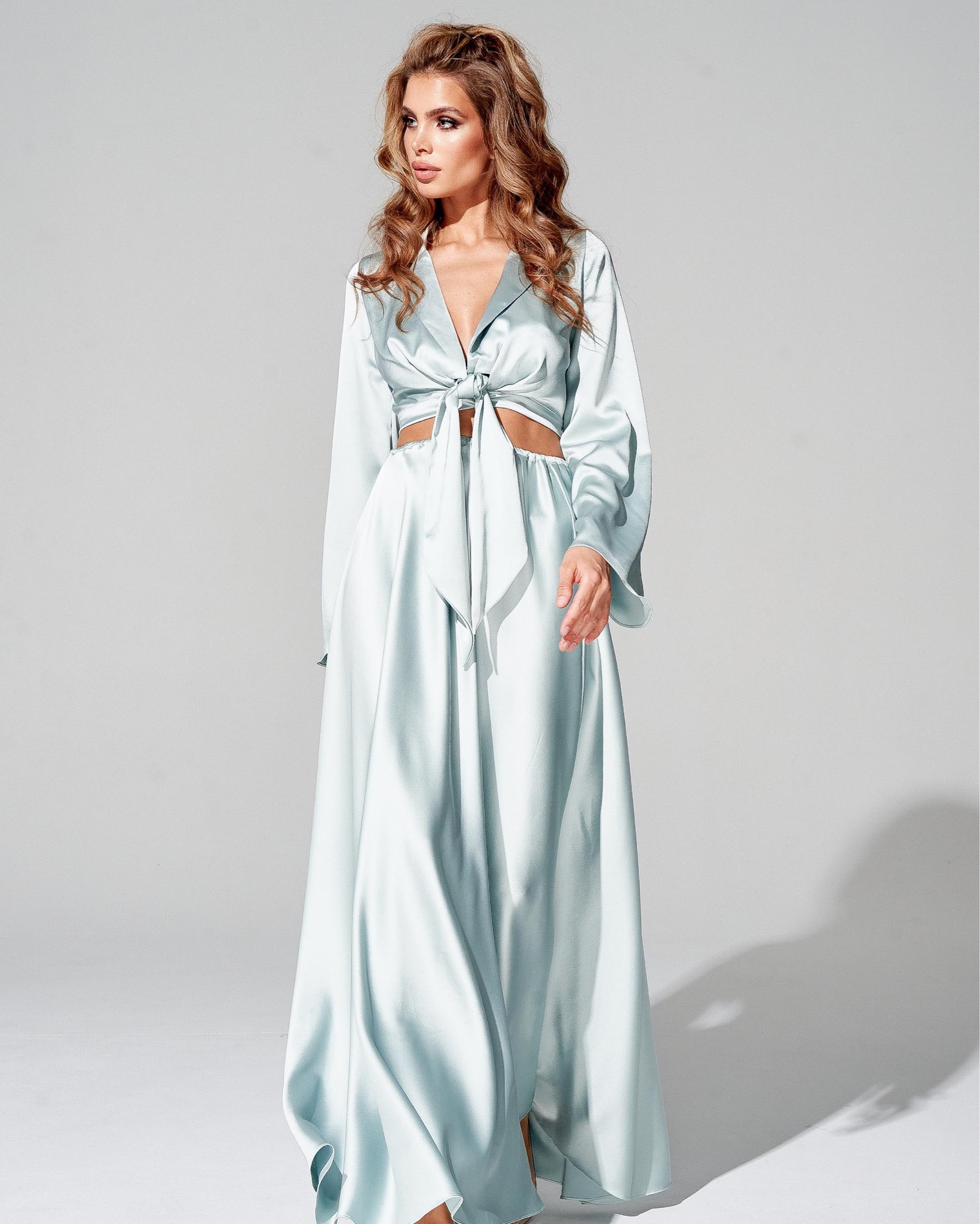 Юбка длины макси в нежном мятном оттенке. Шелковая ткань переливается на солнце, подобно сиянию драгоценных камней. Идеальна для создания женственных и лаконичных образов на каждый день. Стоит лишь подобрать аксессуары - и образ превратится в роскошный вечерний наряд. Изделие может быть изготовлено в любом оттенке из нашей палитры.
