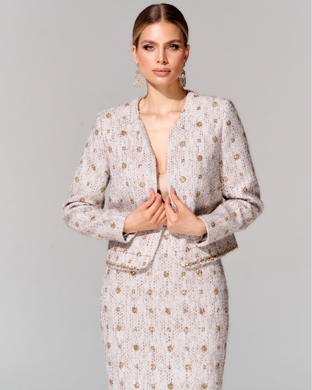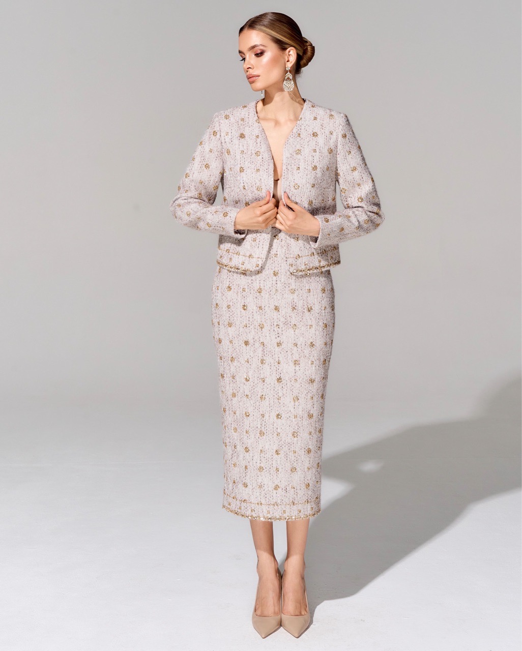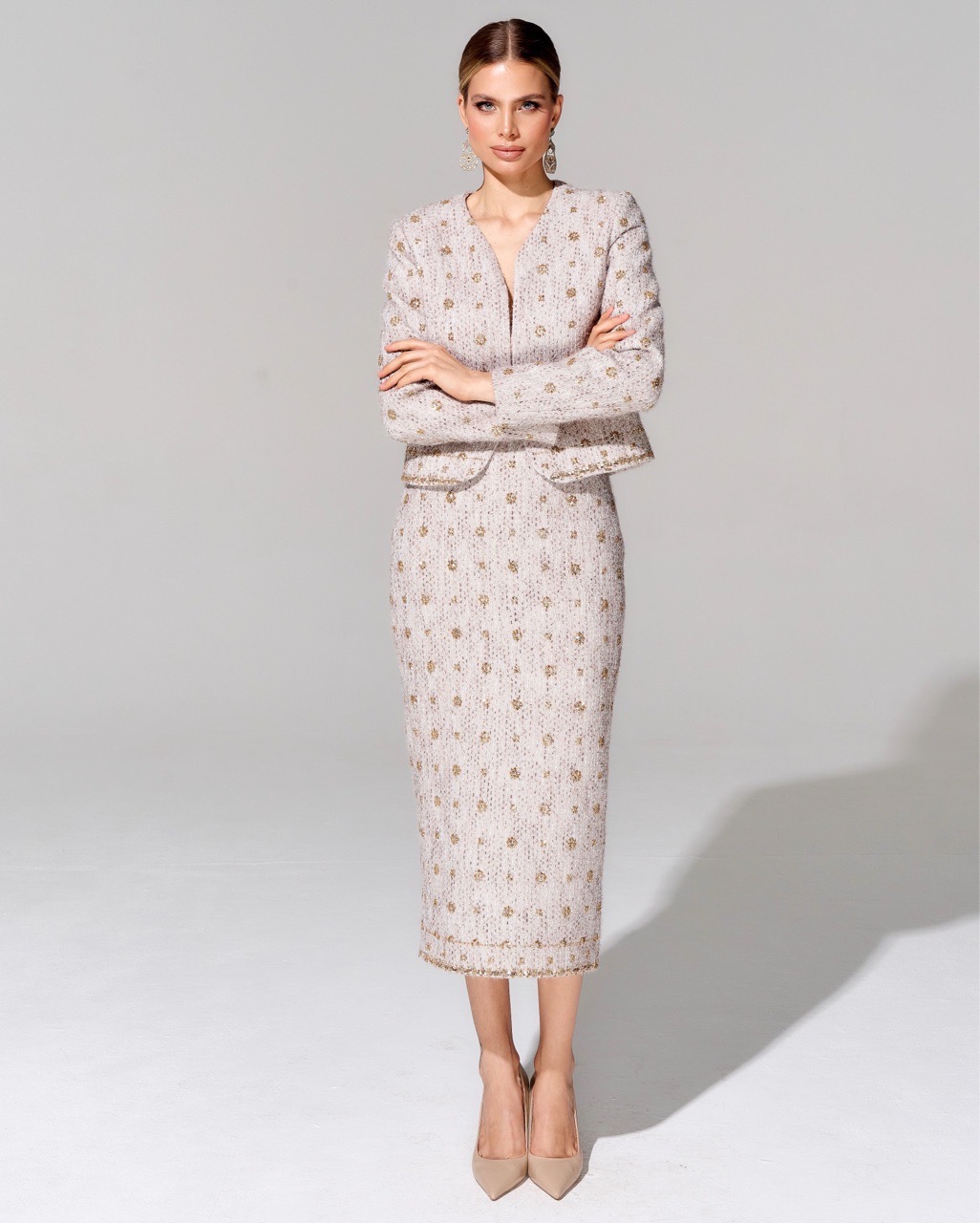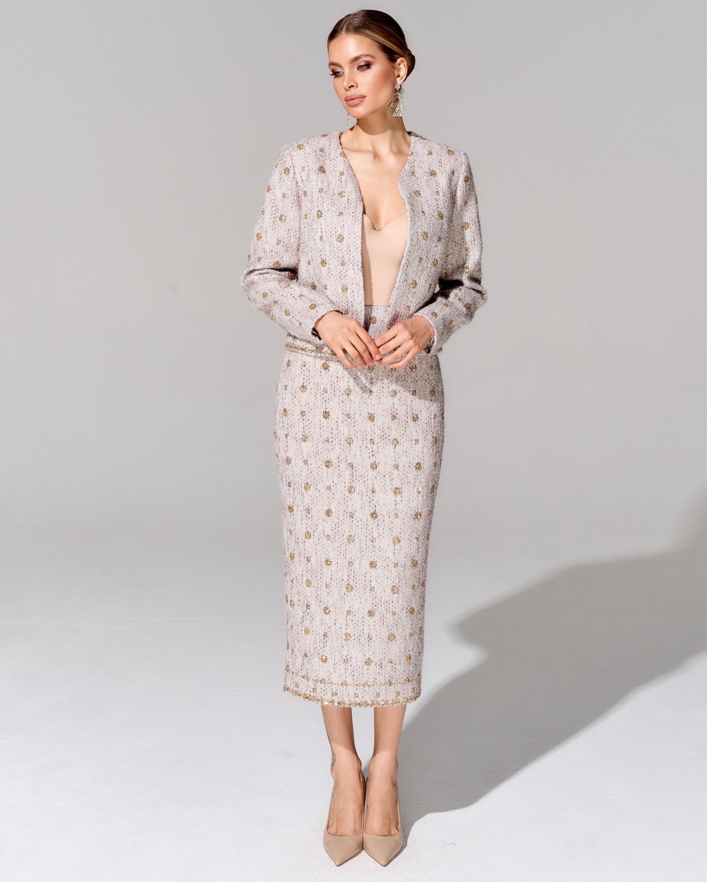 Юбка длины миди из премиального твида