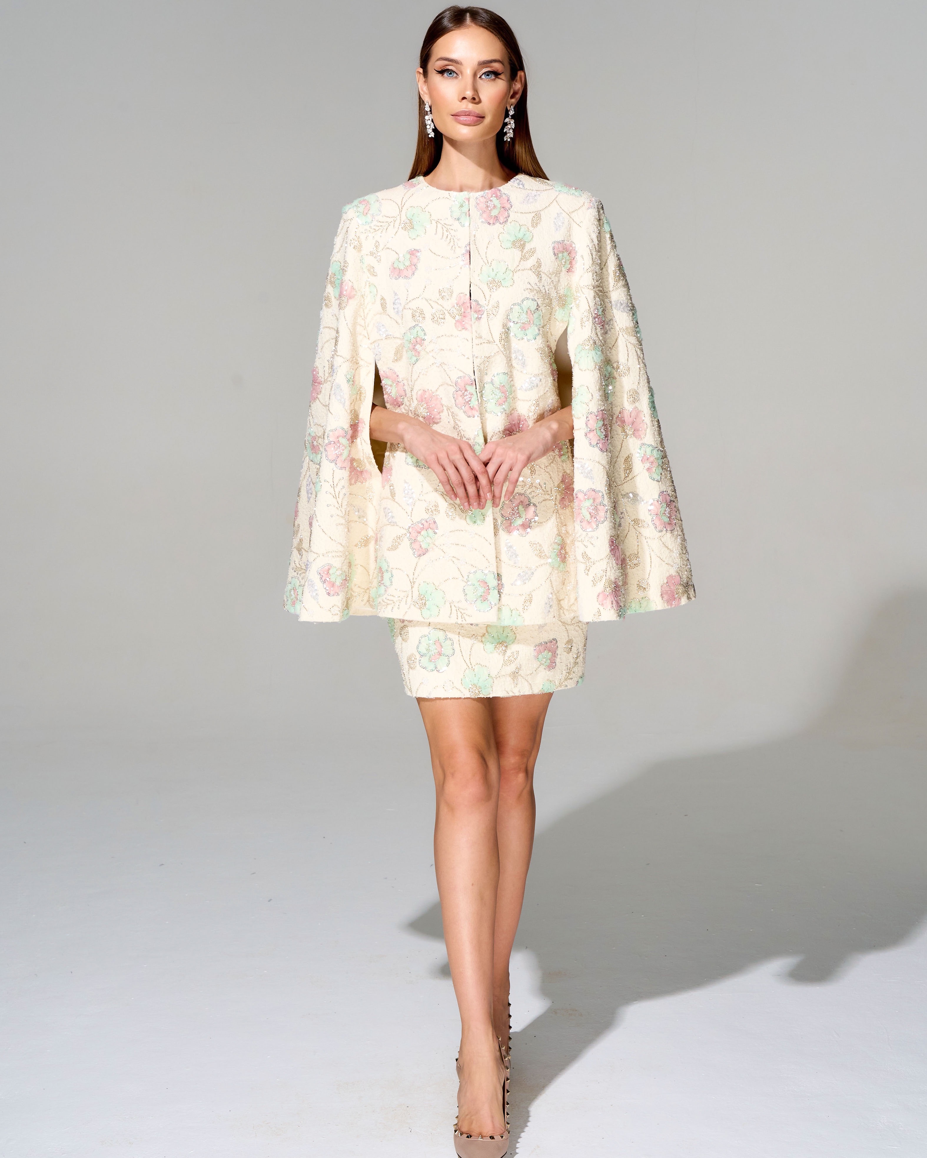 Юбка длины мини с вышивкой ручной работы