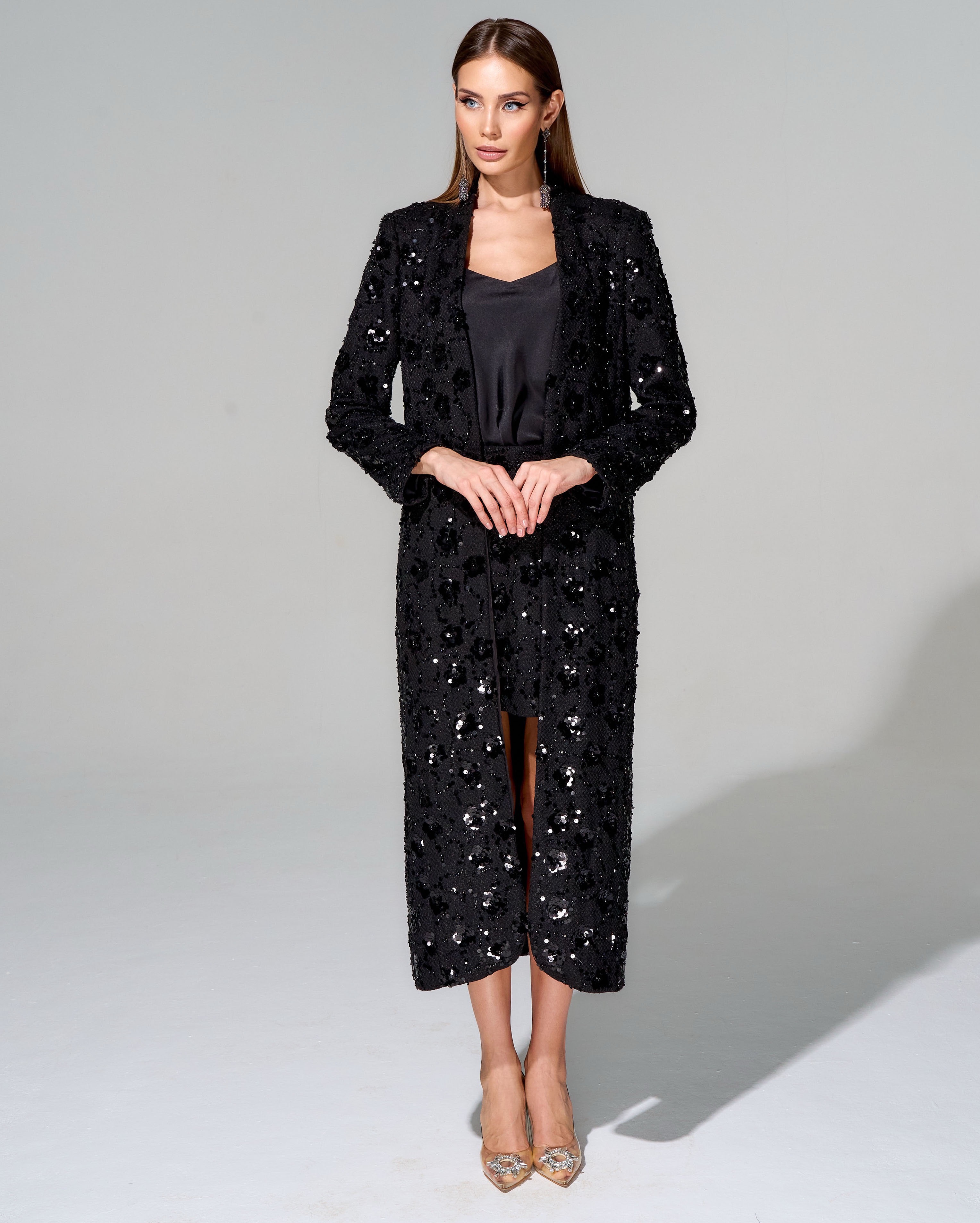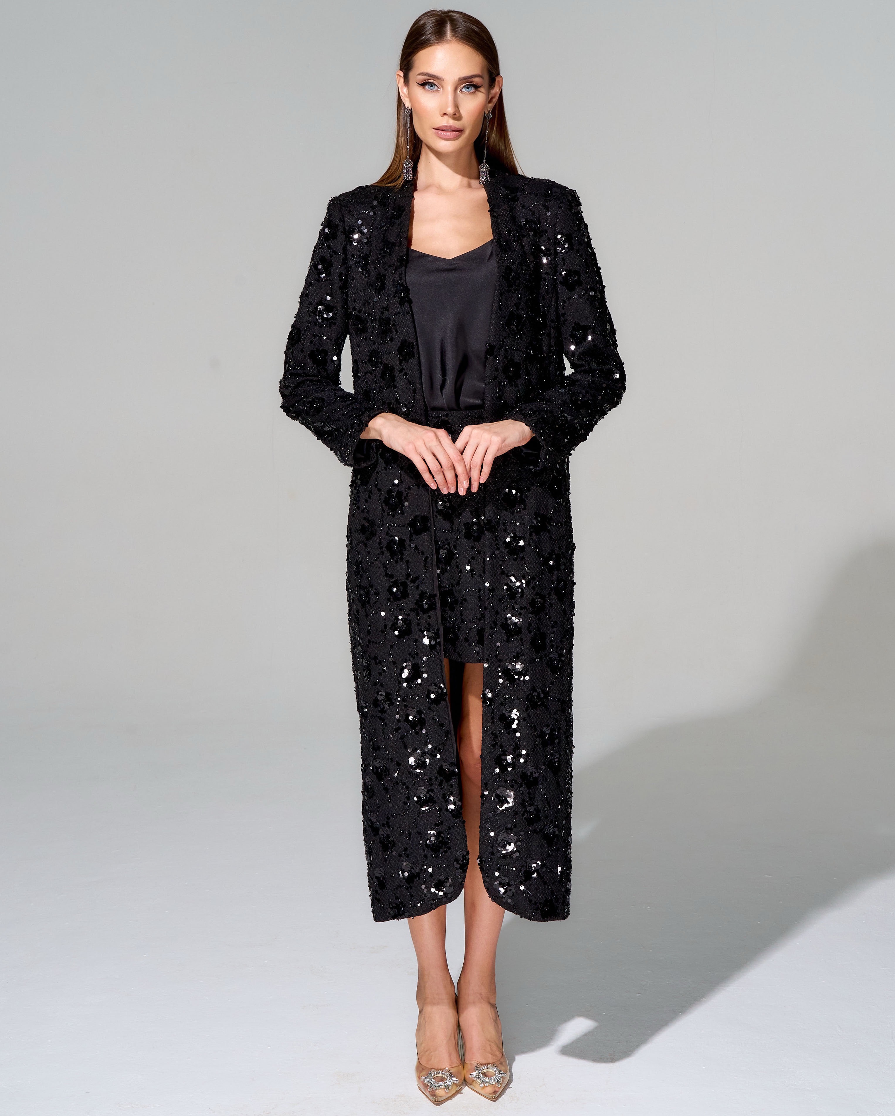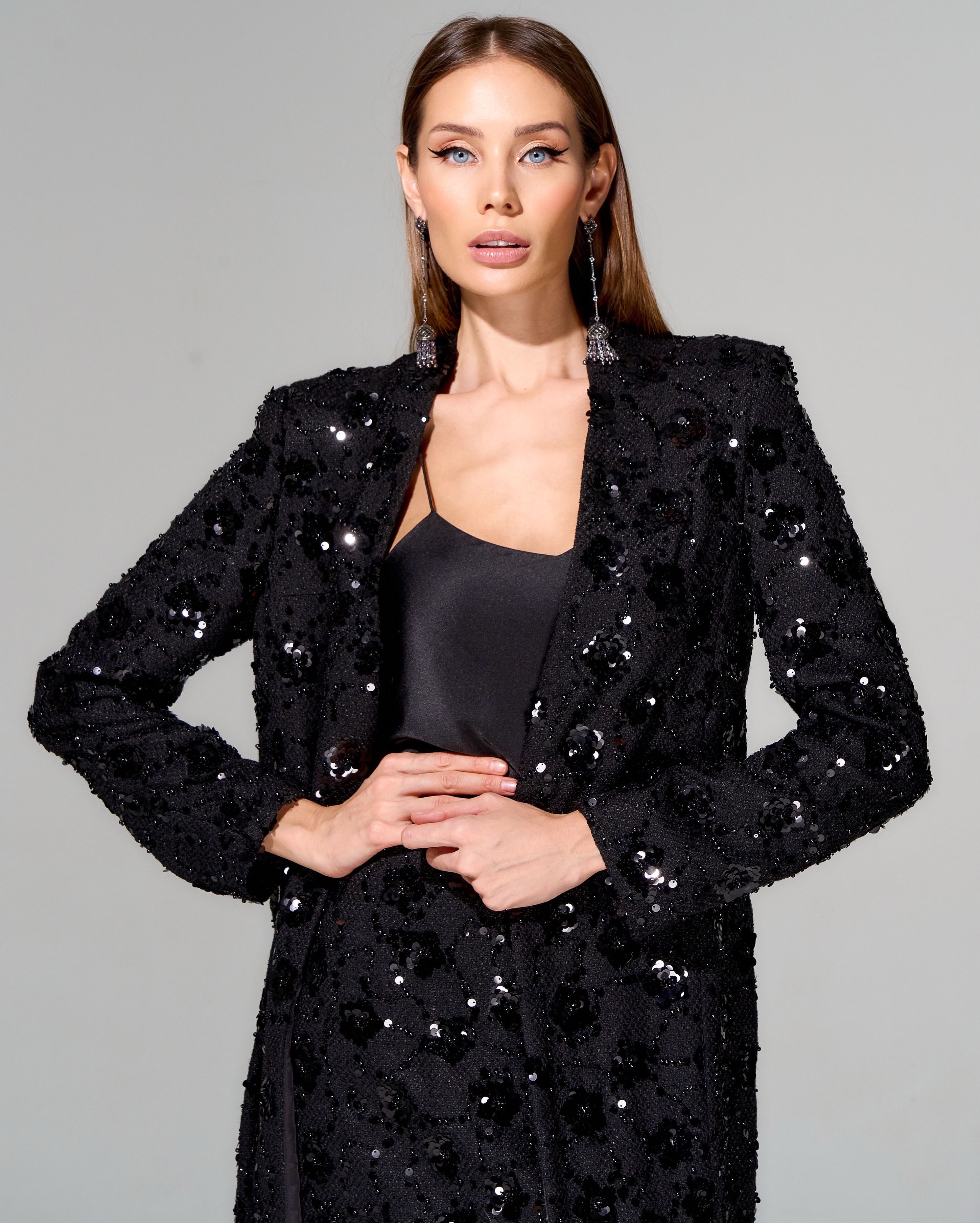 Удлиненный кардиган из премиального твида с вышивкой стеклянным бисером