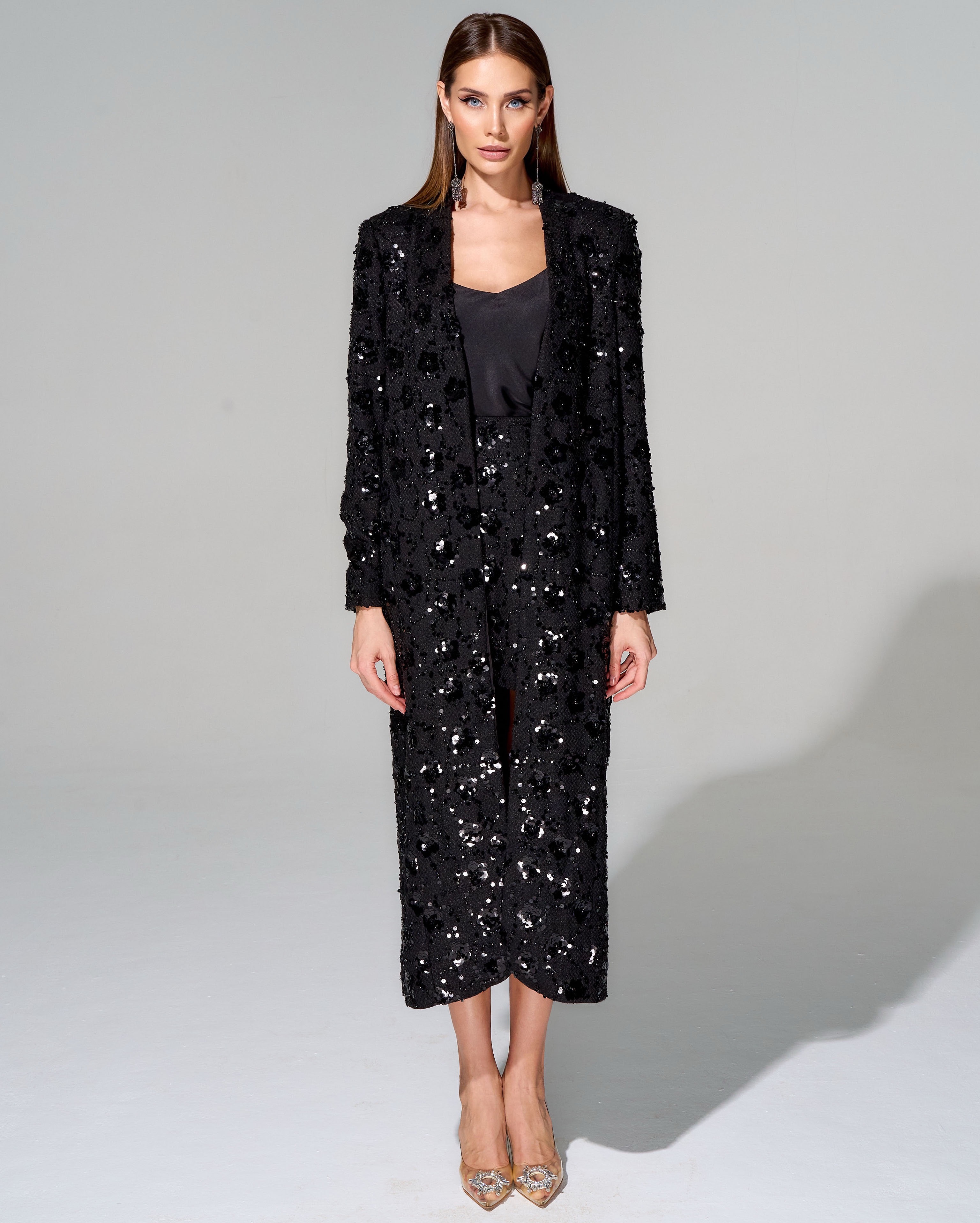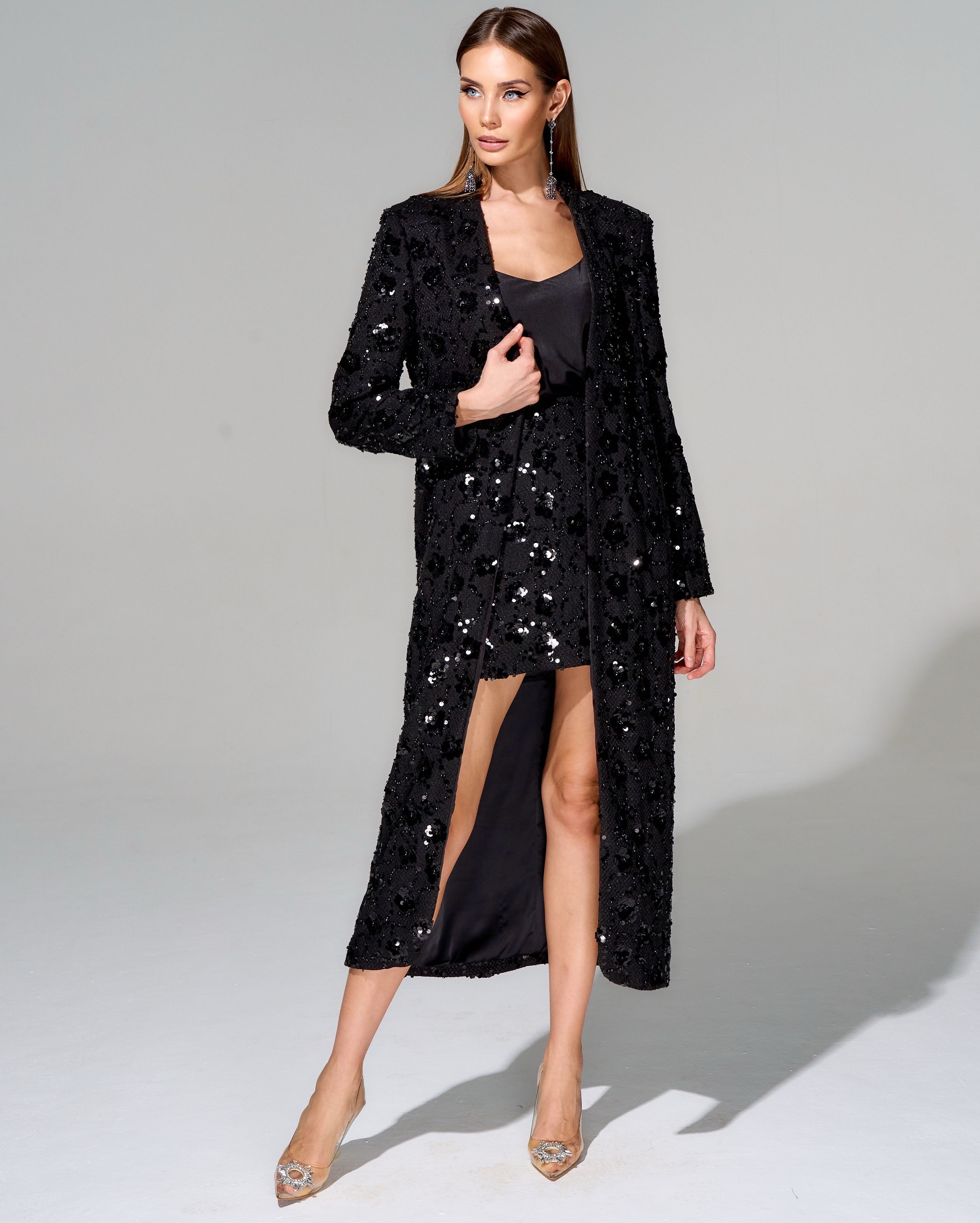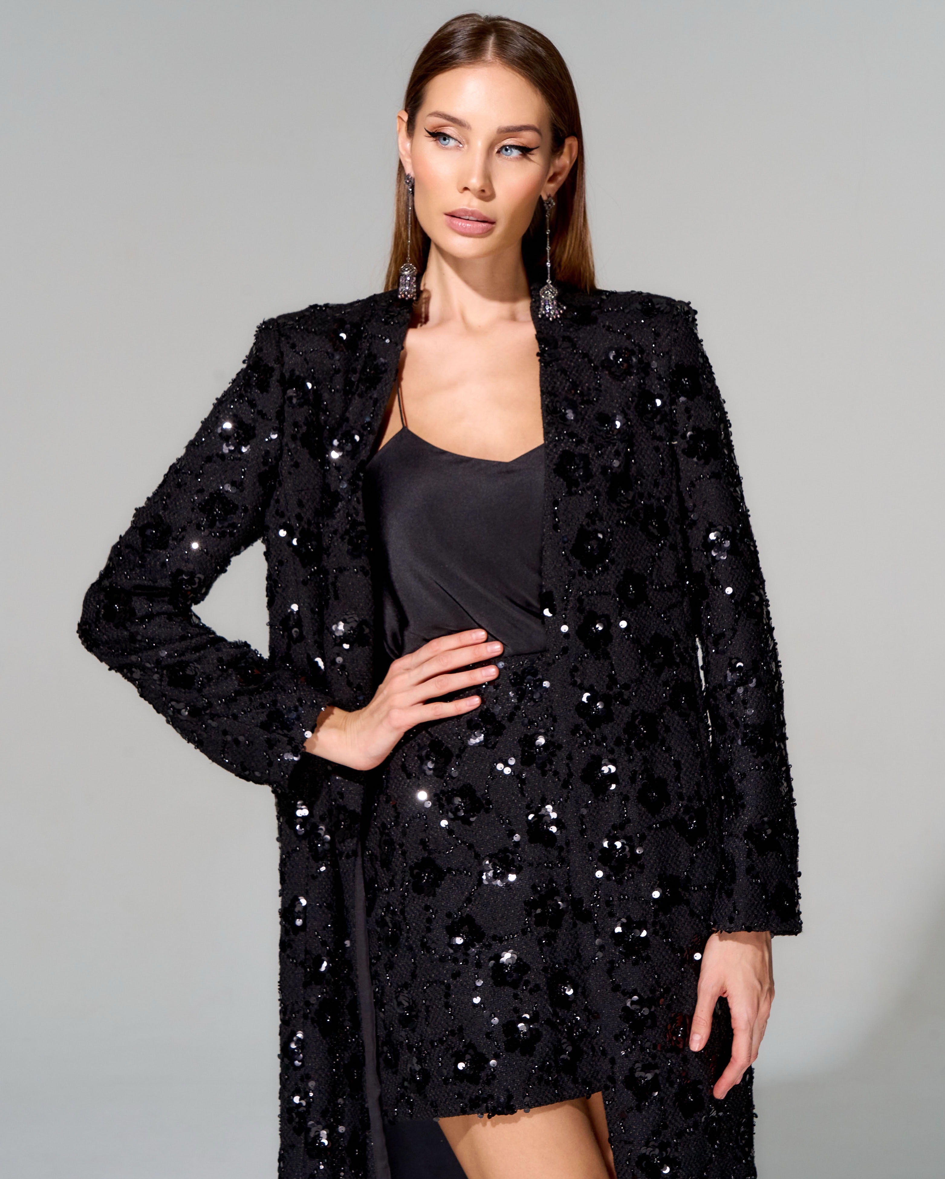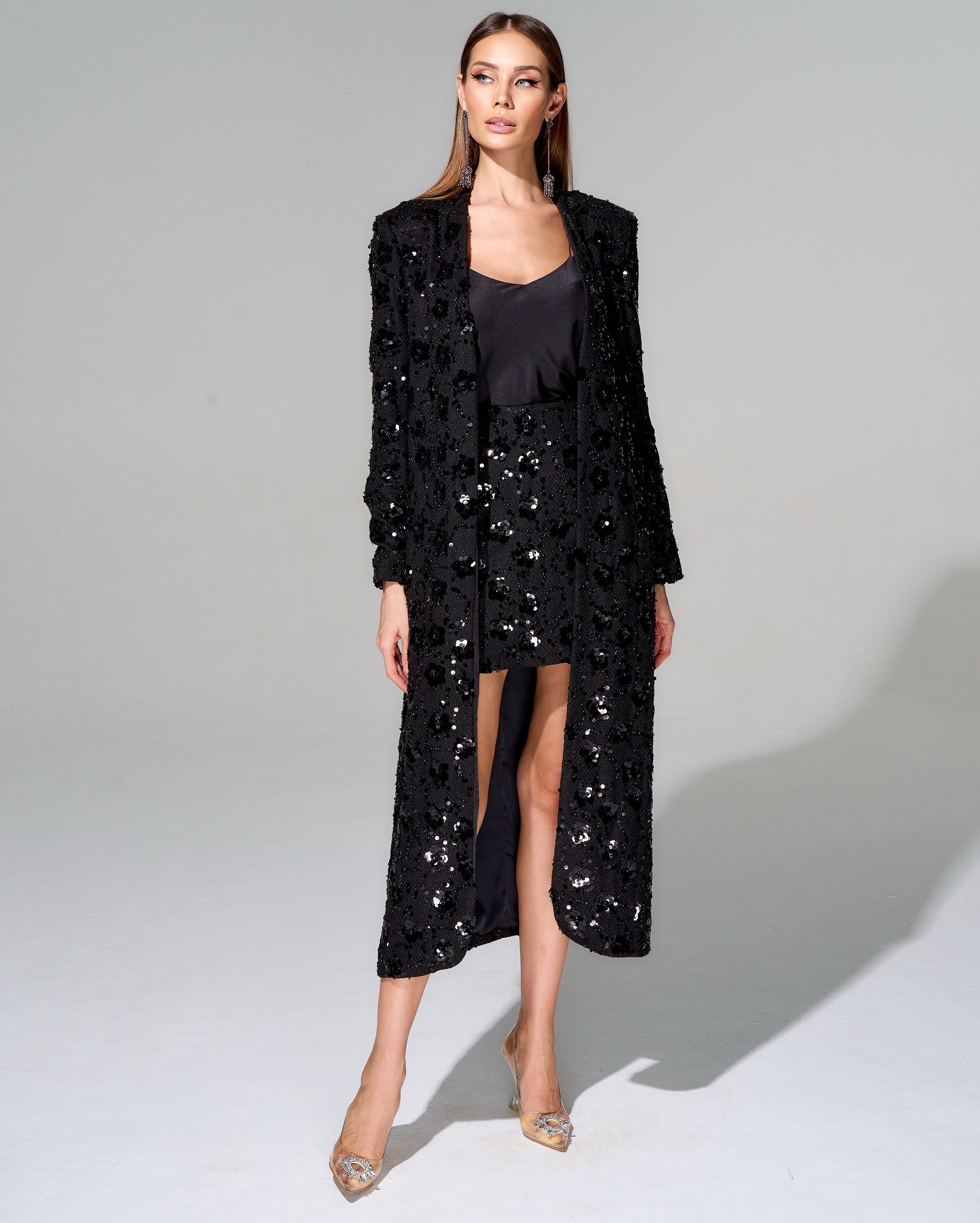 Удлиненный кардиган из премиального твида с вышивкой стеклянным бисером
